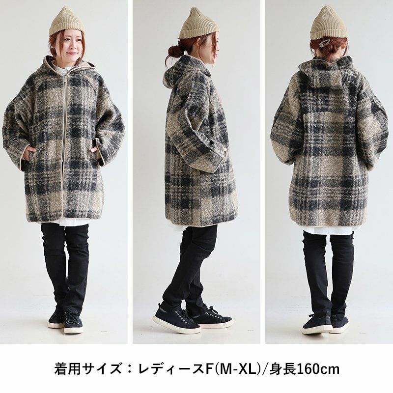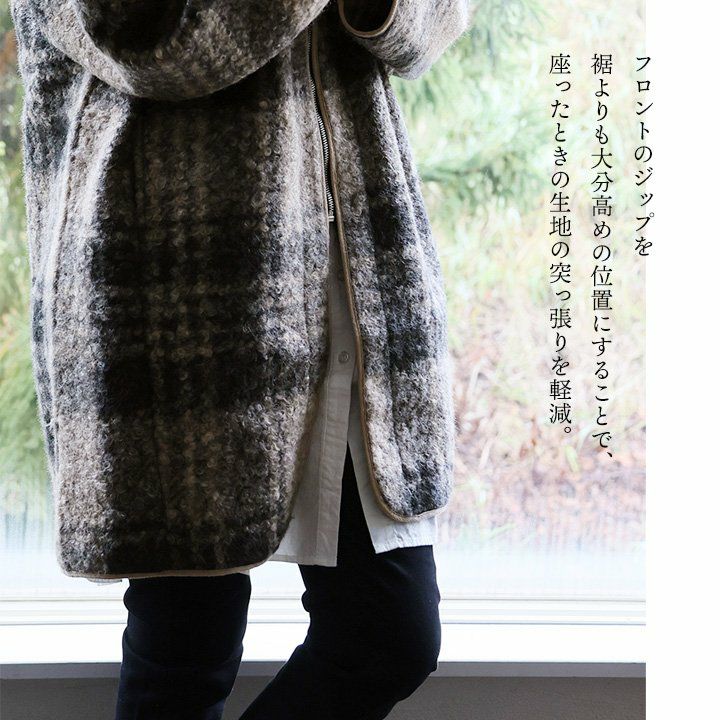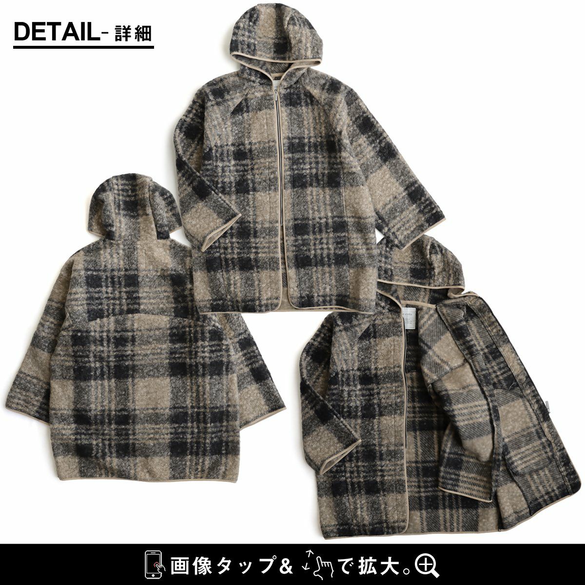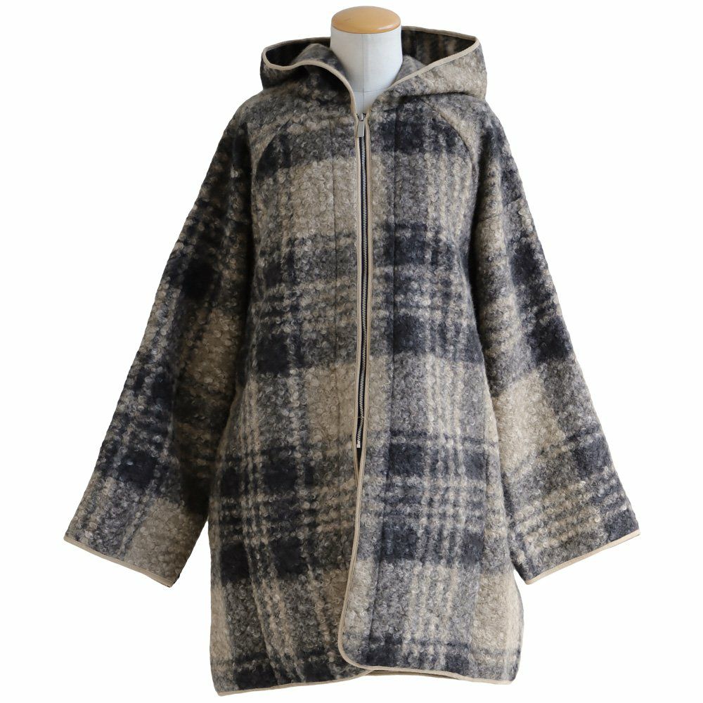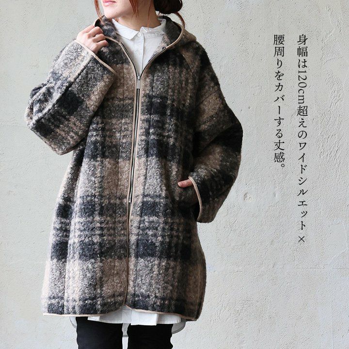暖かくて、表情豊かで、冬の装いに奥行きを。 コート フードコート レディース フード付き チェック柄 ブークレ ポリエステル 暖かい 軽い ゆったり 大きいサイズ 体型カバー カジュアル 秋 冬 パティ le colis ルコリ