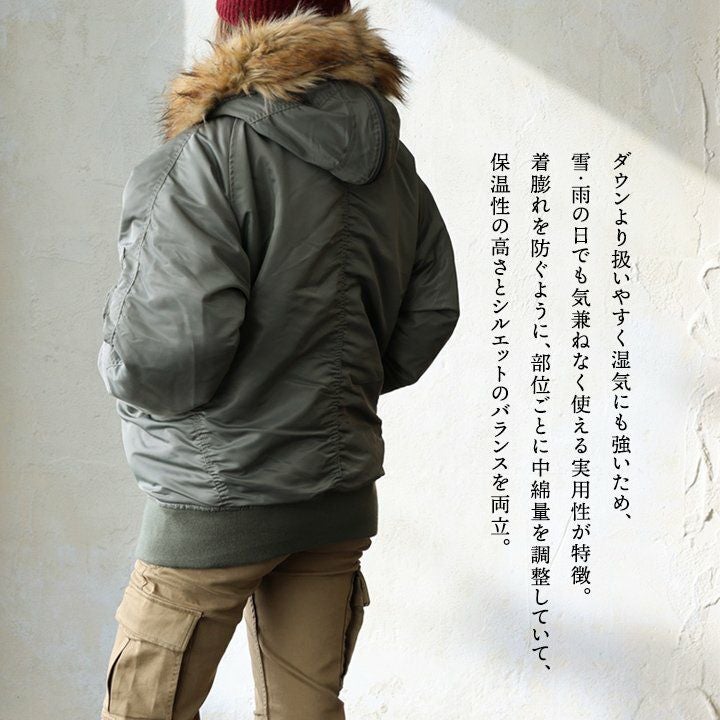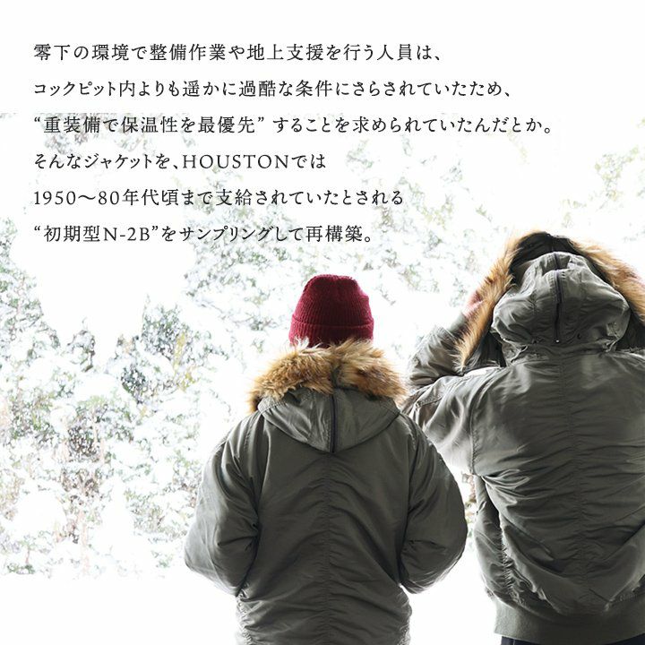 極寒に挑むための設計を、そのまま日常に。 フライトジャケット N-2B メンズ レディース ナイロン ポリエステル 中綿 暖かい フード 2WAY 袖リブ ファー ポケット 大きいサイズ ミリタリー ヴィンテージ カジュアル 秋 冬 パティ HOUSTON ヒューストン