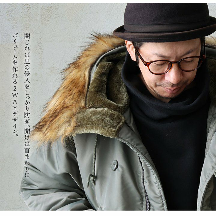 真冬でも安心出来る、寒冷地仕様の頼もしさ。 N3-B ジャケット ミリタリーコート メンズ レディース ハイネック 無地 裏地付き 中綿 ナイロン 暖かい 防寒 防風 袖リブ ポケット 大きいサイズ カジュアル ヴィンテージ 秋 冬 パティ ROTHCO ロスコ