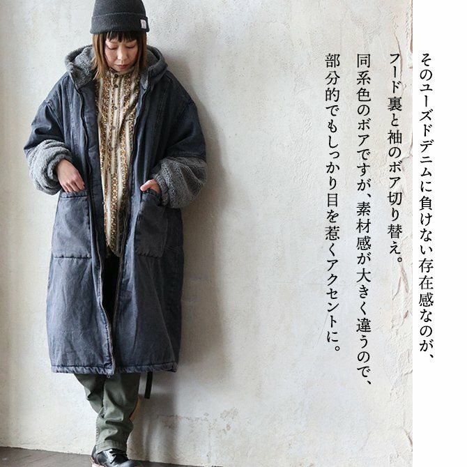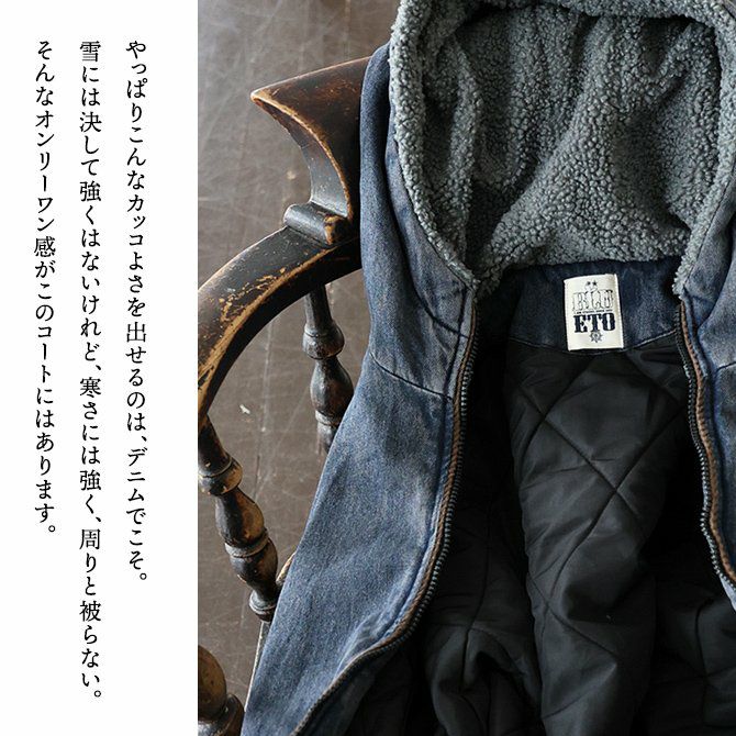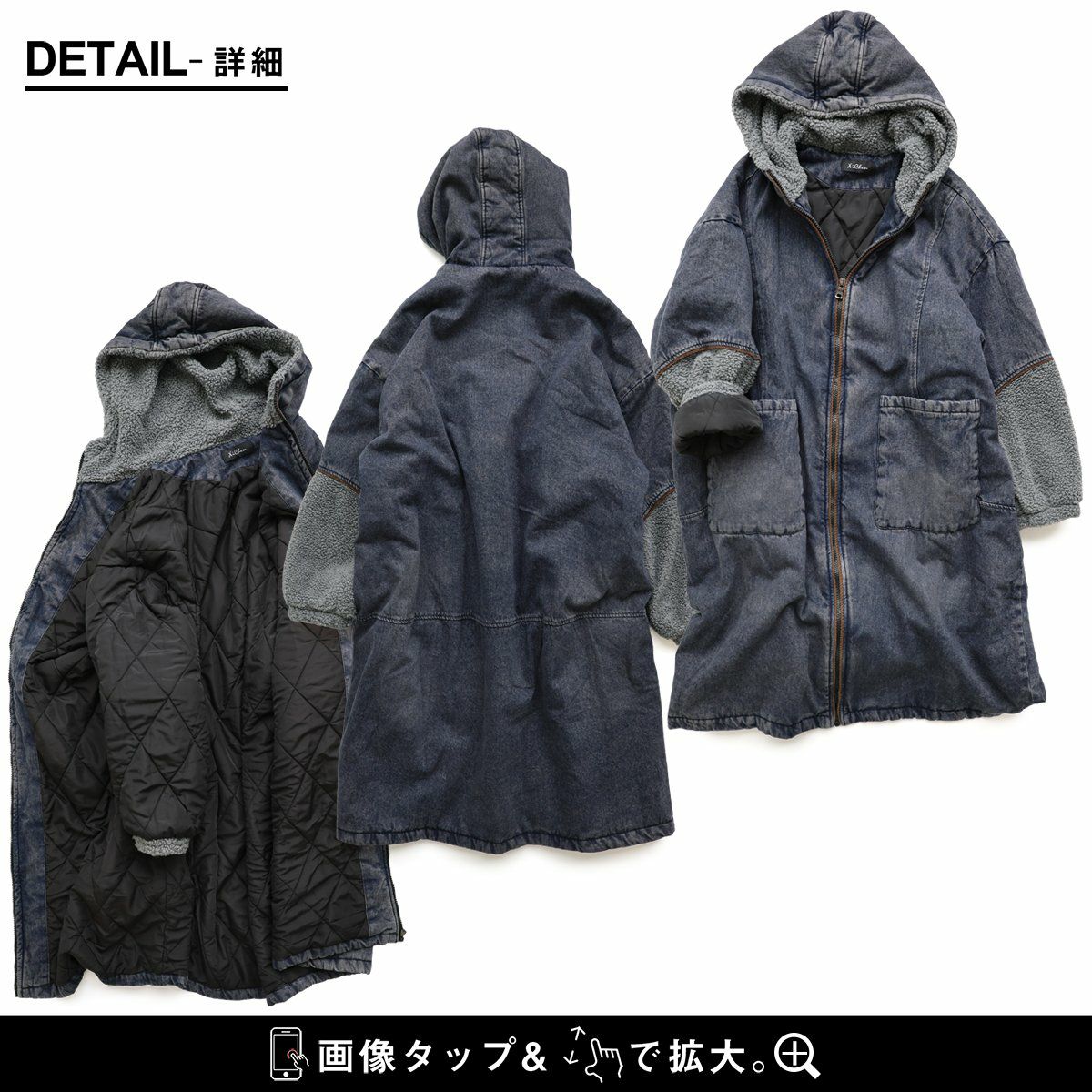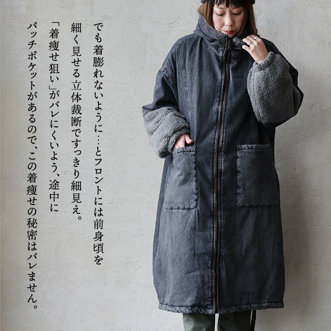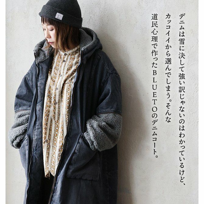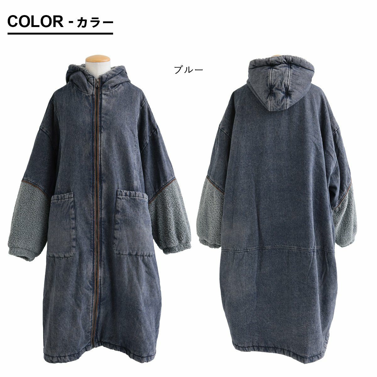 寒さに強く、周りと被らない「オンリーワン」。 コート レディース ボア切り替え デニムコート ポケット ロングコート 冬 アウター ギフト 着痩せ 大きいサイズ パティ BLUETO ブルート