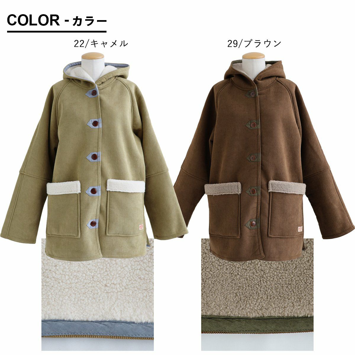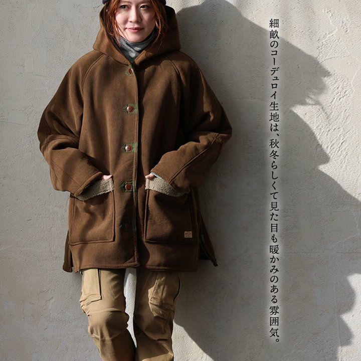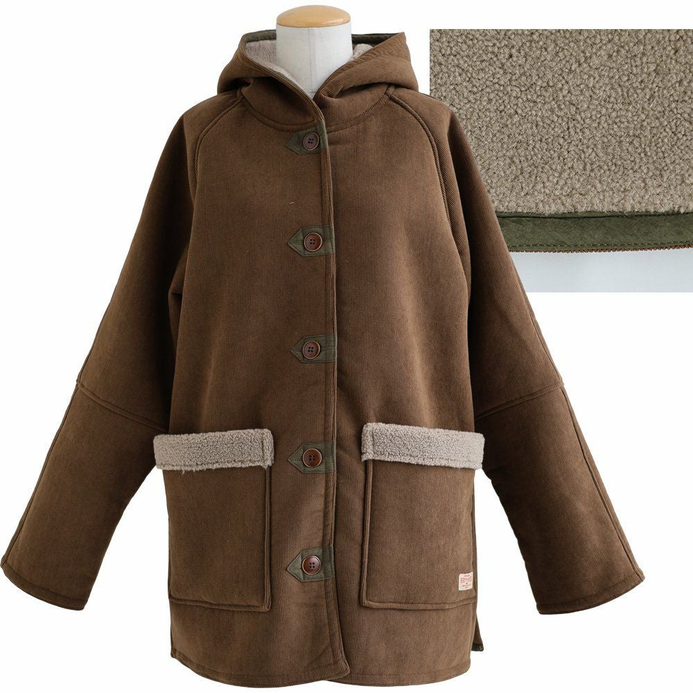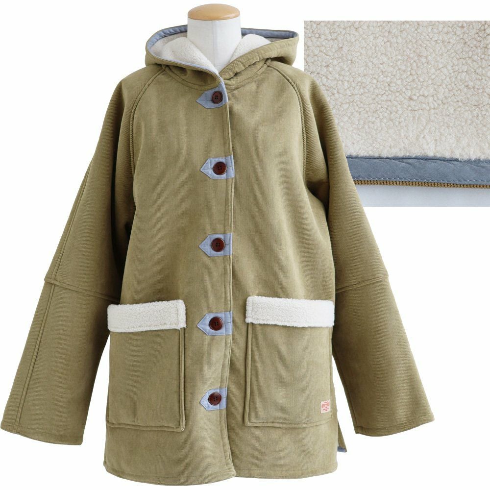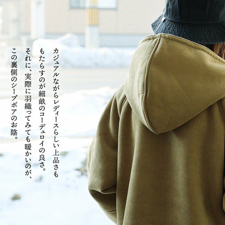 過ぎずに羽織れて、暖かくて、色々と安心。 KRIFF MAYER クリフメイヤー ジャケット レディース お尻隠れる ミディ丈 フード付き コーデュロイ 裏ボア シープボア 暖かい ゆったり 大きいサイズ カジュアル 秋 冬 パティ