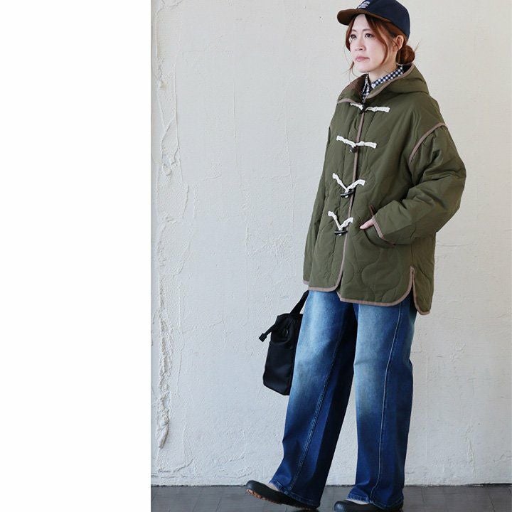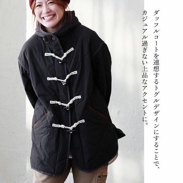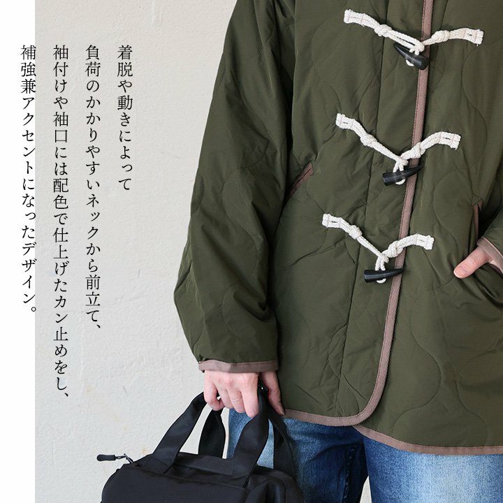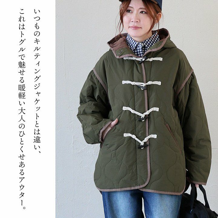 トグルで魅せる暖軽い、”大人のひとクセアウター” KRIFF MAYER クリフメイヤー ジャケット コート レディース フード付き キルティング ナイロン 薄中綿 裏地付き トグル ボタン 暖かい 軽い 大きいサイズ 体型カバー カジュアル 秋 冬 パティ
