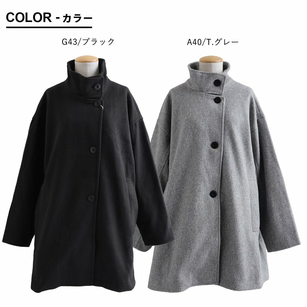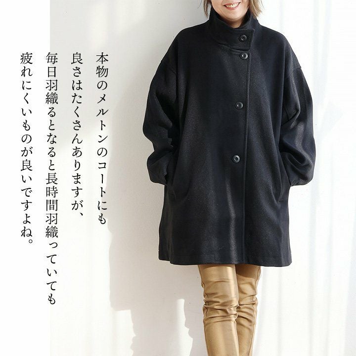 見た目は重厚なのに、着心地は軽快で暖か。 コート メルトンコート ハイネック レディース ポリエステル 裏地付き ストライプ柄 無地 軽い 暖かい 大きいサイズ 体型カバー カジュアル 秋 冬 パティ GENTIL ジャンティ