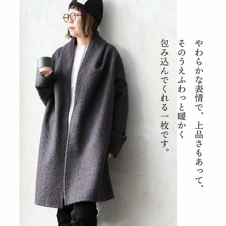 やわらかな表情で、品良く、暖かく包み込む。 コート 長袖 レディース Vネック ポリエステル ブークレー プードルボア 軽い 暖かい ポケット付き ゆったり 体型カバー 大きいサイズ 大人カジュアル 秋 冬 パティ le colis ルコリ