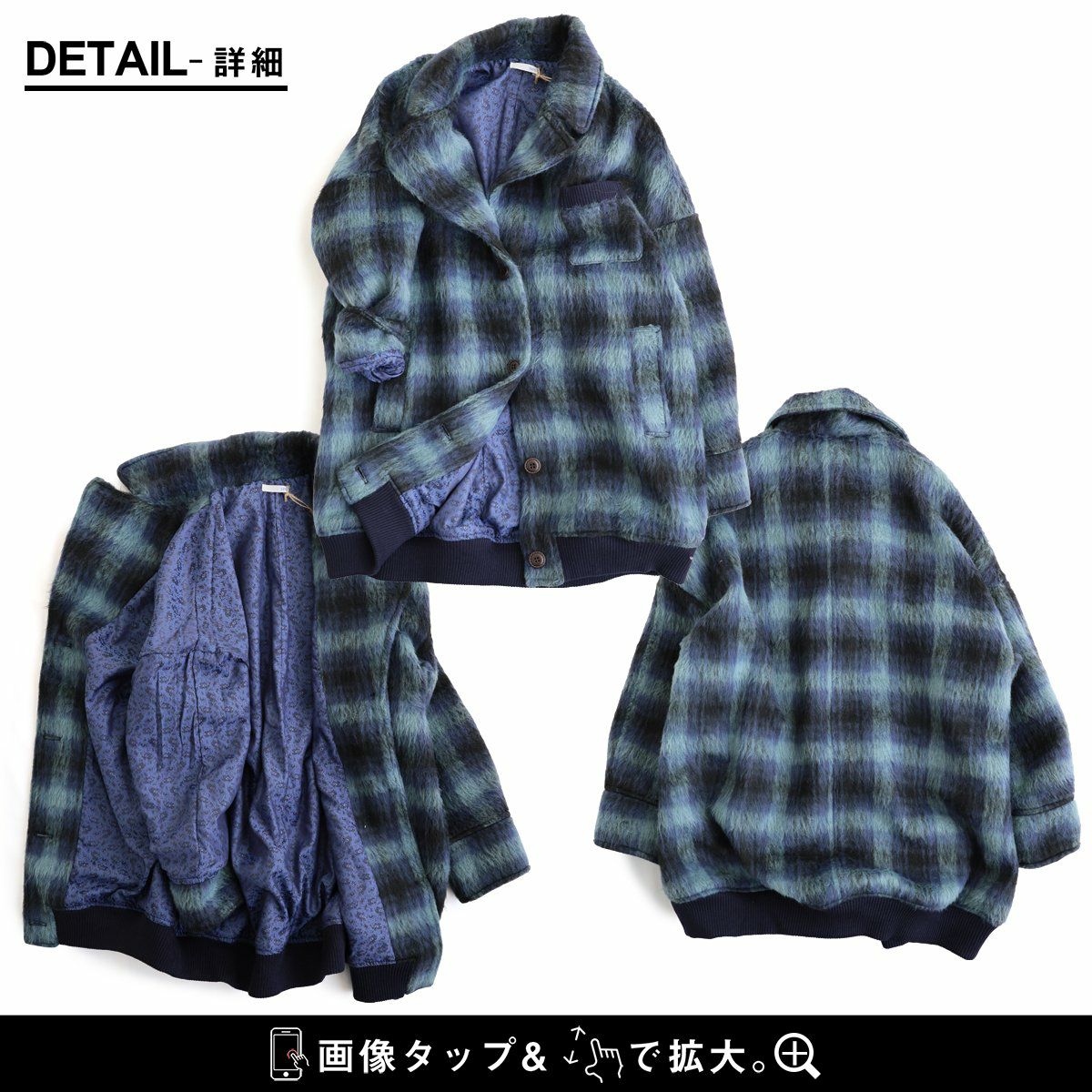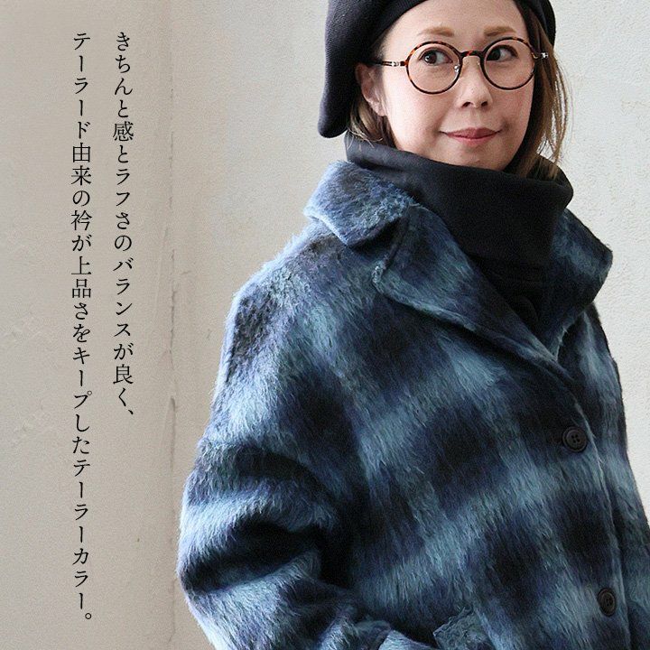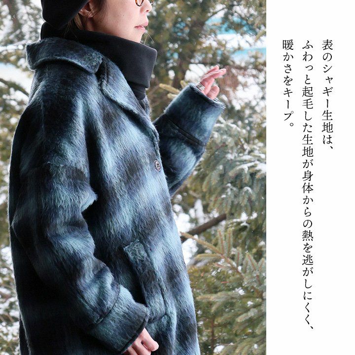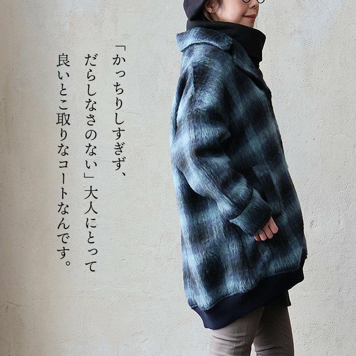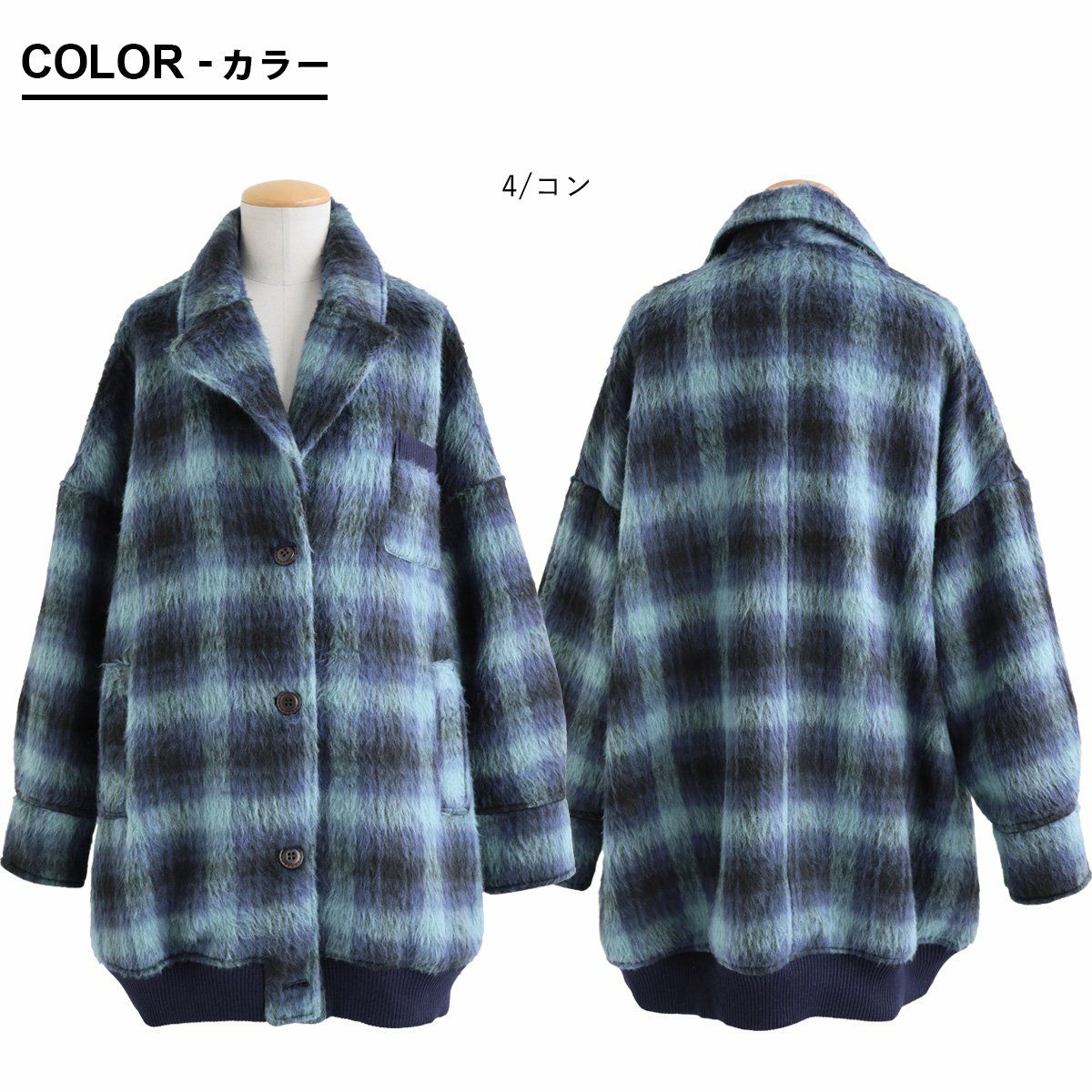 大人にとって「良いこと尽くし」なシャギーチェック。 コート テーラーカラー Vネック レディース オンブレチェック ポリエステル シャギー 裏地付き ペイズリー 暖かい 防寒 体型カバー 大きいサイズ カジュアル 秋 冬 パティ sandy サンディー