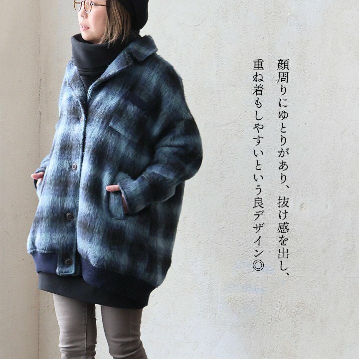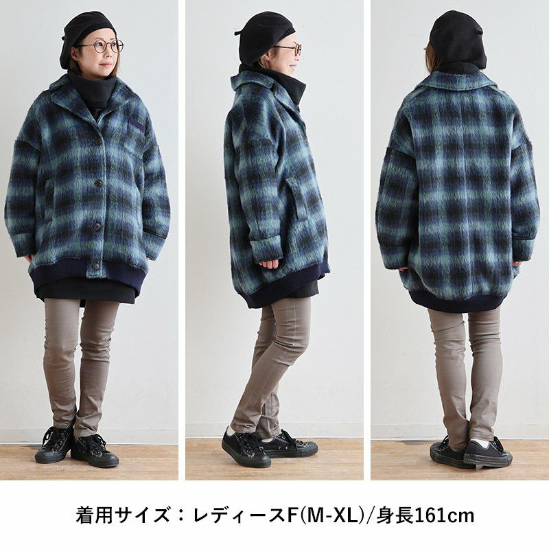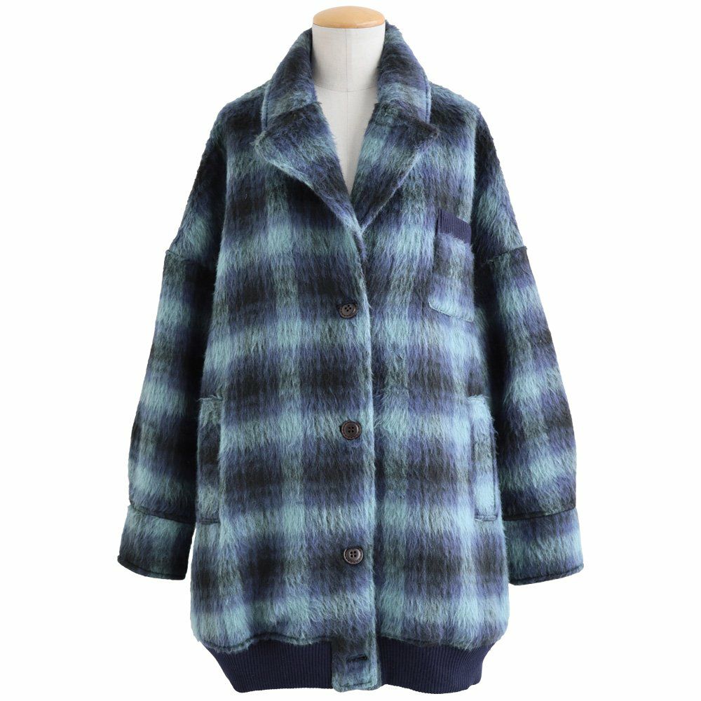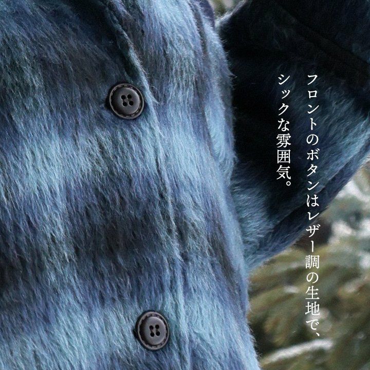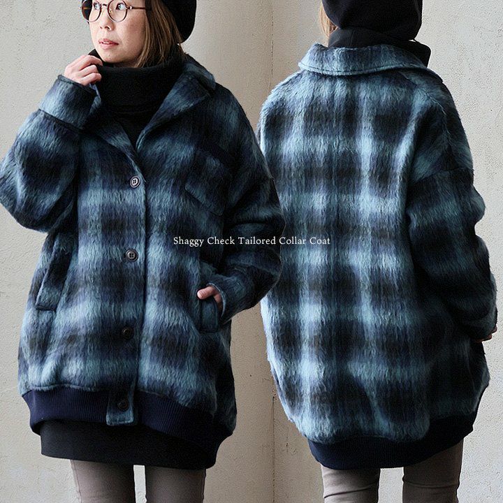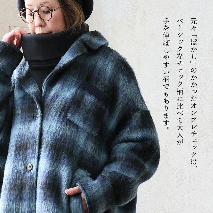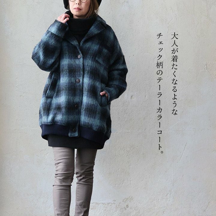 大人にとって「良いこと尽くし」なシャギーチェック。 コート テーラーカラー Vネック レディース オンブレチェック ポリエステル シャギー 裏地付き ペイズリー 暖かい 防寒 体型カバー 大きいサイズ カジュアル 秋 冬 パティ sandy サンディー