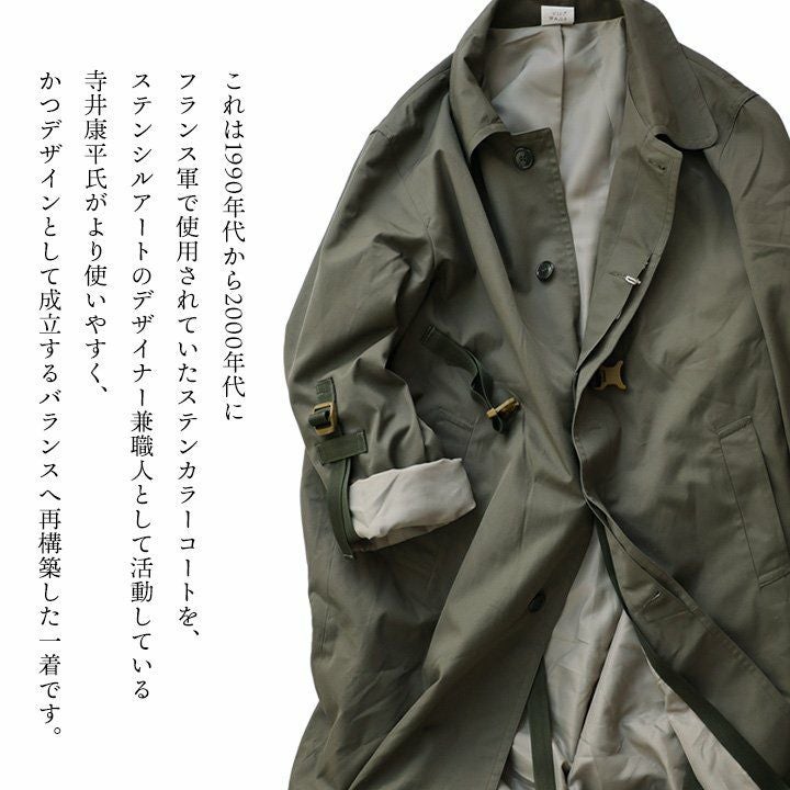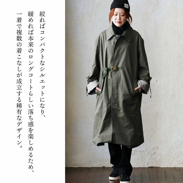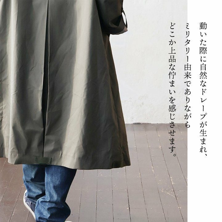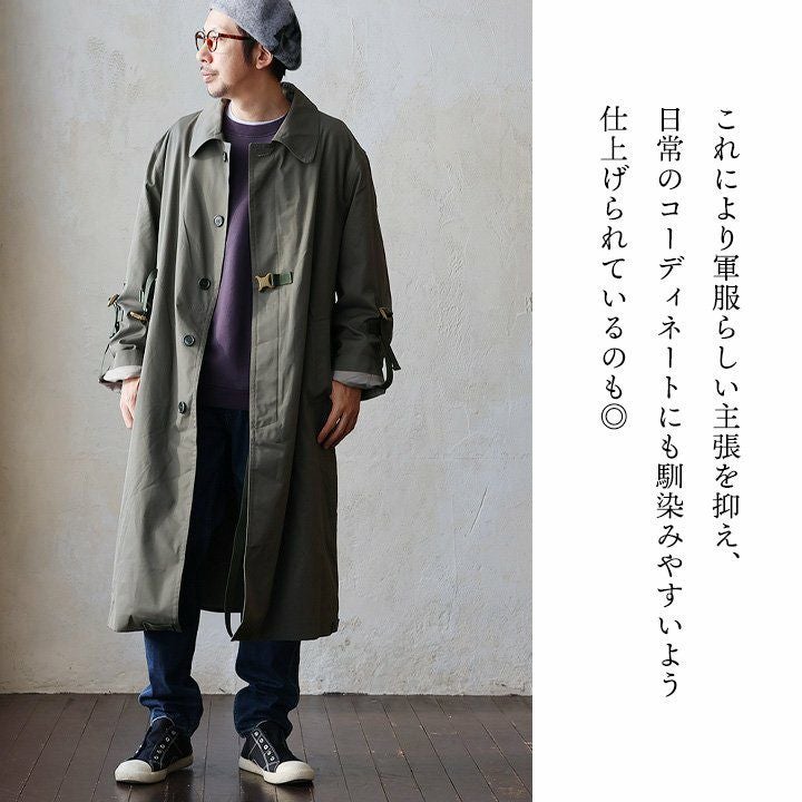 完成された軍服を、今の暮らしに合わせて再編集。 アウター ステンカラーコート 長袖 メンズ レディース リメイク アジャスターベルト サイズ調整可 裏地付き 大きいサイズ カジュアル ミリタリー 秋 冬 春 パティ