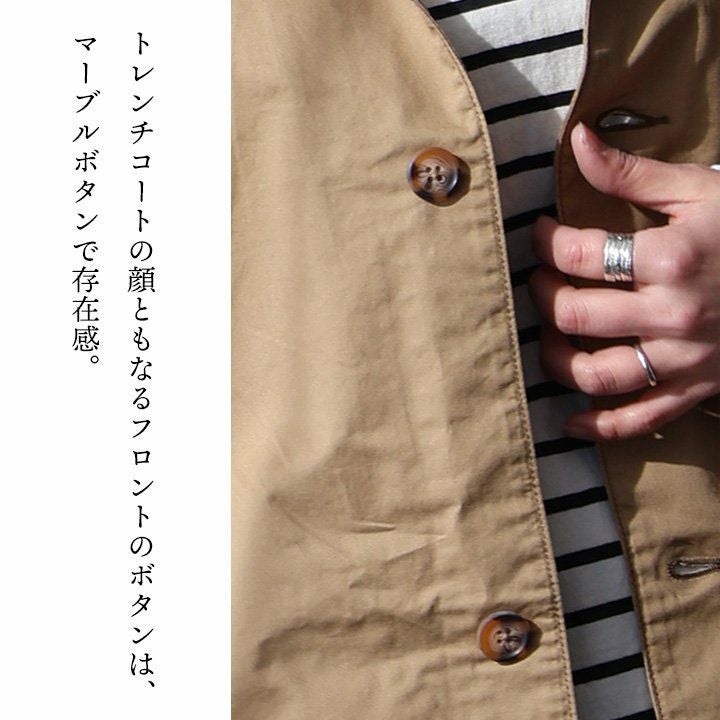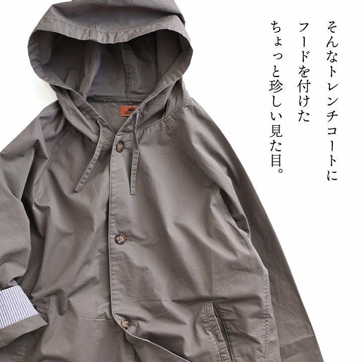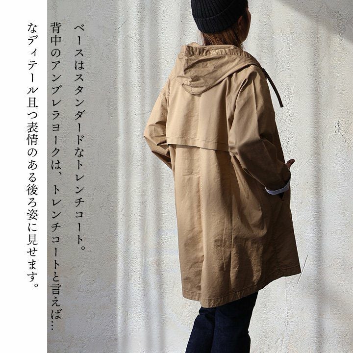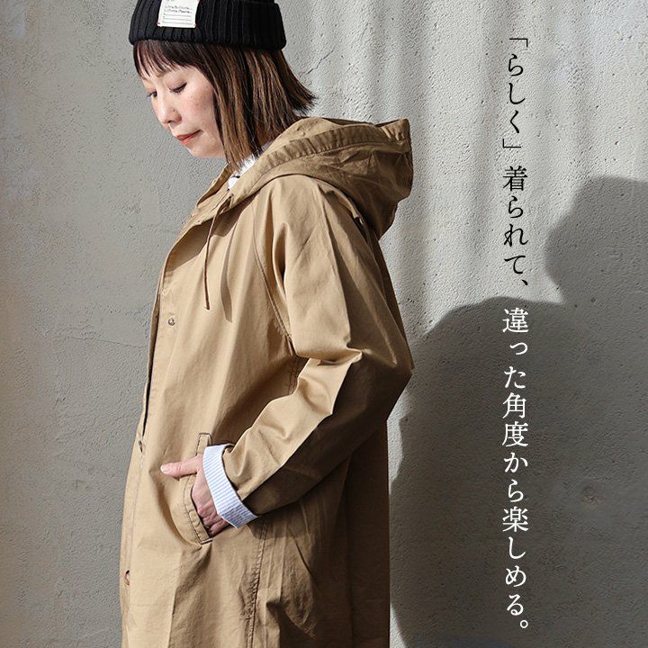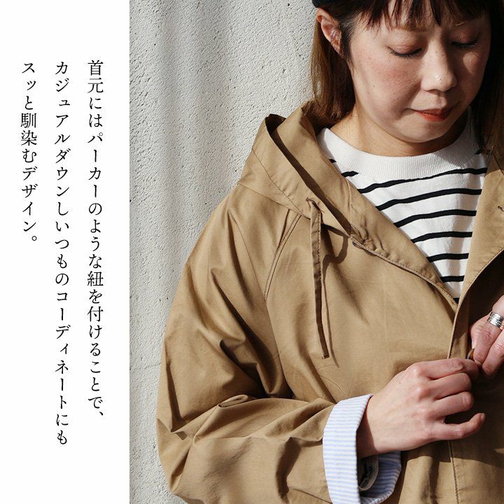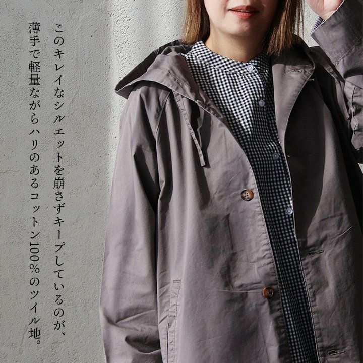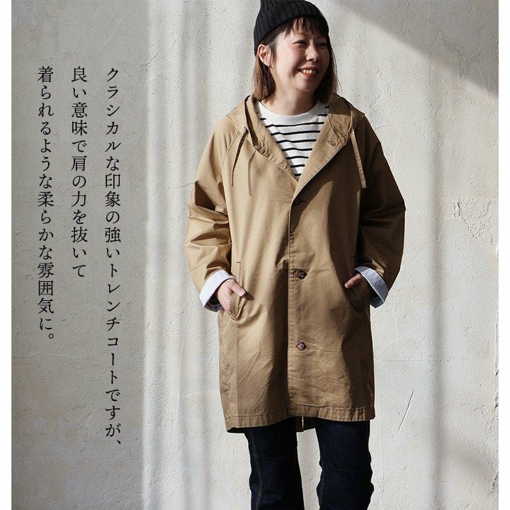 「らしく」着られて、違った角度から楽しめる。 KRIFF MAYER クリフメイヤー トレンチコート フード付き レディース 無地 綿100 コットン ツイル 袖裏 ストライプ 配色 お尻隠れる 体型カバー 大きいサイズ カジュアル 春 パティ