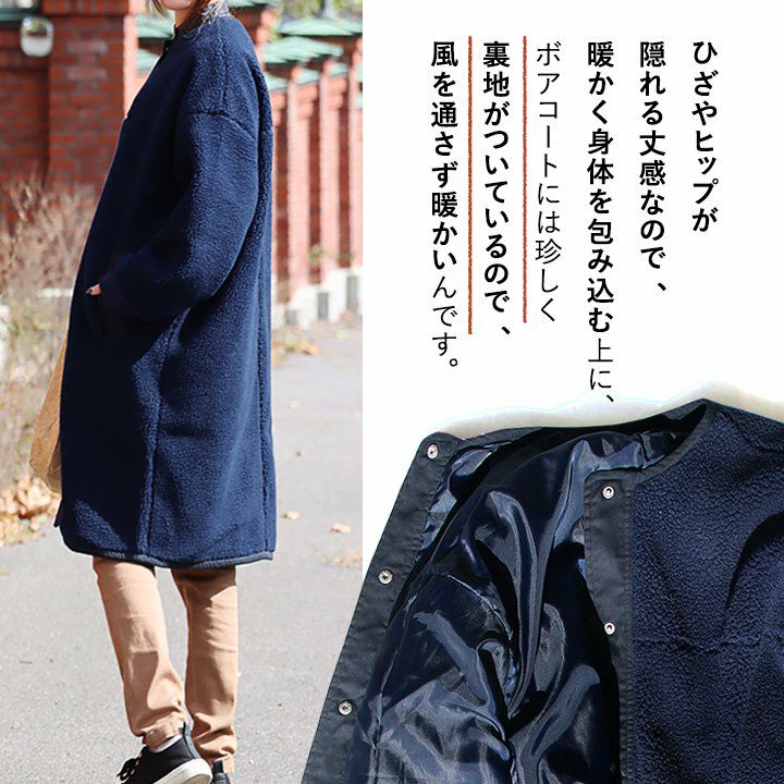 他の画像を見る こんなに軽いのに、モコモコあったか、着膨れずスッキリ。 コート レディース 秋 冬 ロング ひざ下 ノーカラー ボア フリース 裏地付き 長袖リブ お尻隠れる 異素材切り替え スナップボタン アウター ボアコート 無地 軽量 防寒 防風 暖かい 着痩せ 無地 ネイビー 大人カジュアル PATY パティ BLUETO ブルート 2~3日でお届け 販売価格 ¥ 8,360 税込 在庫切れ カートに入れる お気に入りに登録する