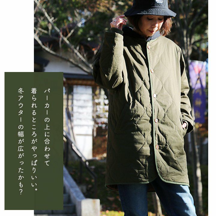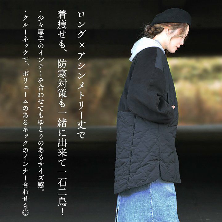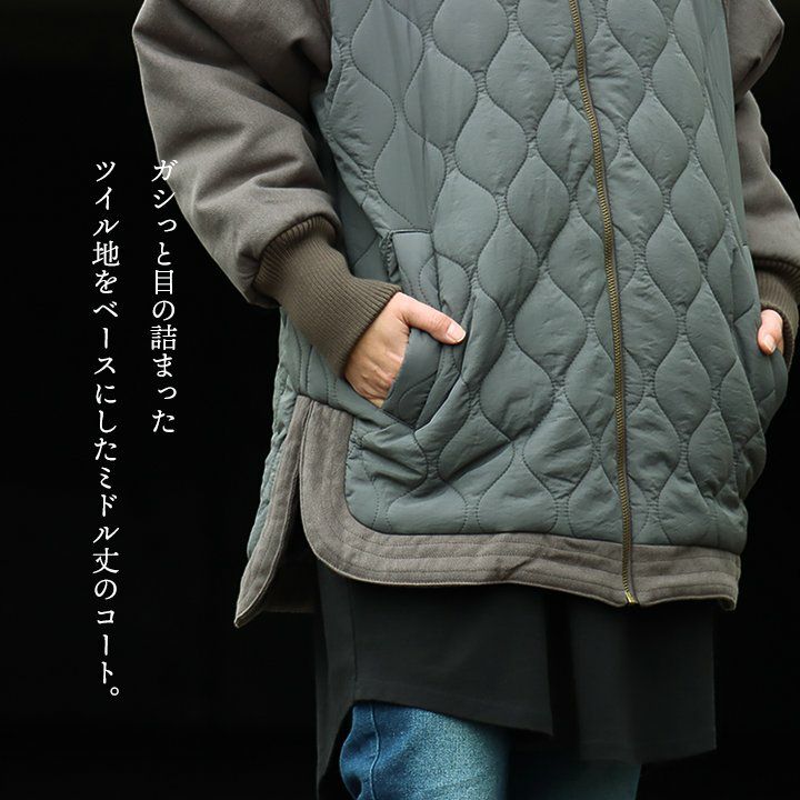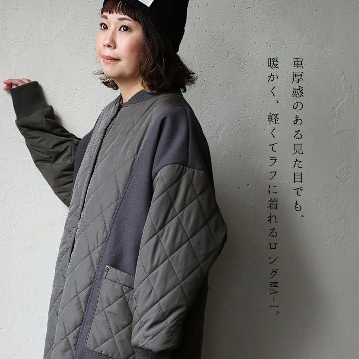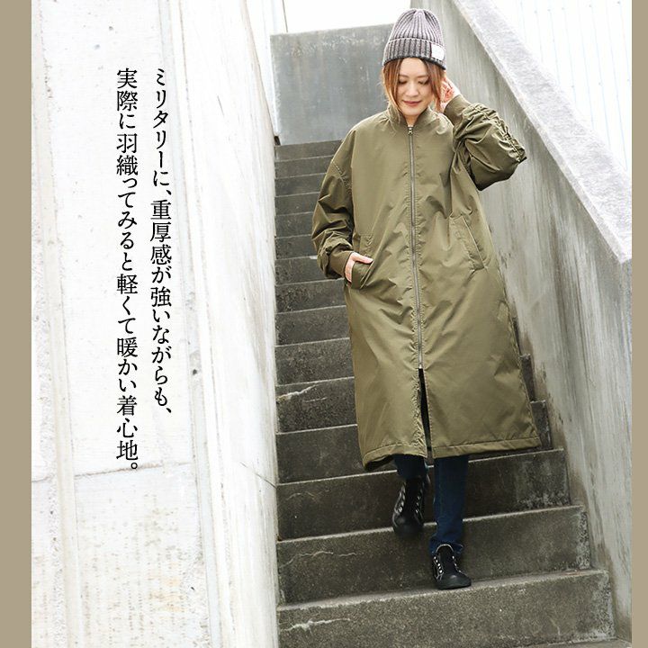 他の画像を見る 重厚感ある見た目でも、暖かく、軽くてラフに。 コート ロング丈 レディース MA-1 ノーカラー キルティング 異素材 切り替え 中綿 軽い 暖かい 防寒 スリット 袖リブ 体型カバー 着痩せ 大きいサイズ 秋 冬 カジュアル PATY 2~3日でお届け 販売価格 ¥ 8,690 税込 在庫切れ カートに入れる お気に入りに登録する