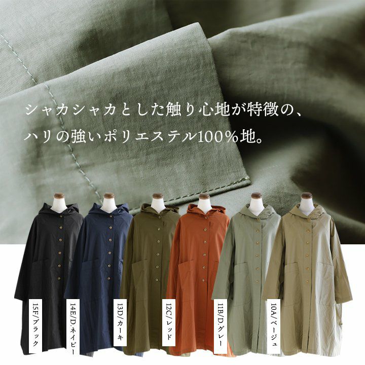 他の画像を見る コートと言うより、マウンテンパーカーのようなカジュアルさが新鮮。 コート ロング丈 スプリングコート レディース ハイネック 薄手 ナイロン100% 撥水 軽い 体型カバー 大きいサイズ ゆったり 春 春服 カジュアル PATY パティ 2~3日でお届け 販売価格 ¥ 5,390 税込 在庫切れ カートに入れる お気に入りに登録する