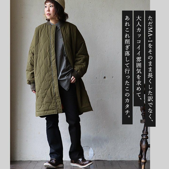 他の画像を見る 『長いMA-1』ってだけじゃない、ギャップ。 コート ジャケット レディース ノーカラー リブ衿 変形 MA-1 袖リブ 軽い 暖かい 中綿 キルティング ナイロン ワイド メンズライク ミリタリー カジュアル 秋 冬 アウター OAR’S オールズ 2~3日でお届け 販売価格 ¥ 17,050 税込 在庫切れ カートに入れる お気に入りに登録する