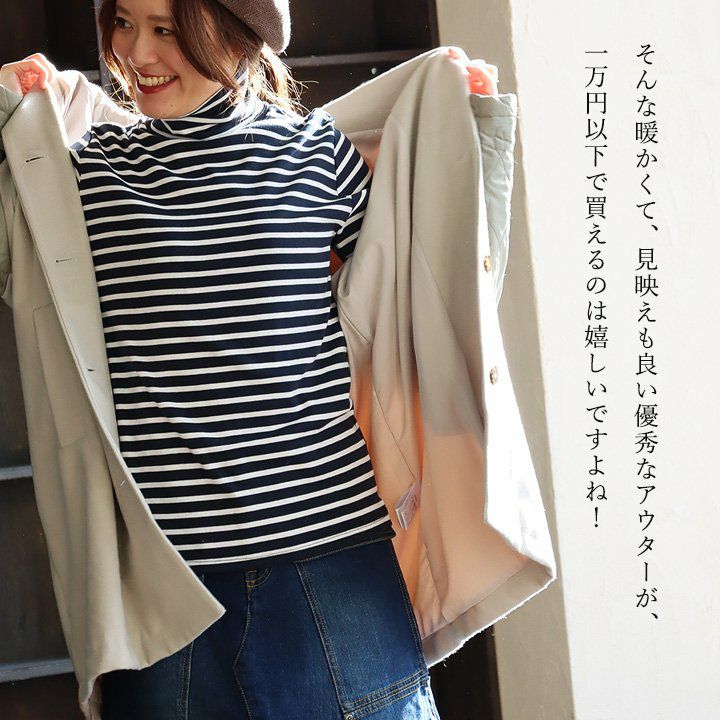 他の画像を見る 雨にも風にも寒さにも強い。丈夫で軽い「裏ボア」ライナーコート。 (オールズ) OAR'S ミドル丈コート 裏ボア ノーカラー キルティング ロクヨンクロス テフロン加工 販売価格 ¥ 10,890 税込 在庫切れ カートに入れる お気に入りに登録する