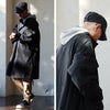【モデルコメント】中は、何でも合わせられます。でも、大き過ぎて着ないサイジングですね…。 【客観的コメント】ふくらはぎが少し隠れるくらいの着丈の長さです。かなり大きめなサイジングでしたね。