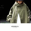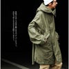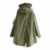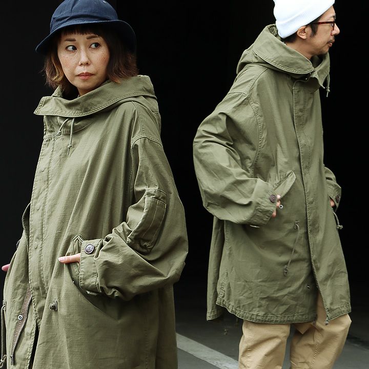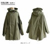 【客観的コメント】ヒザがほとんど隠れる着丈の長さです。Mサイズで十分にゆとりのあるサイジングでしたね。