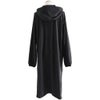 【モデルコメント】中は、何でも合わせやすそうです。ゆったりとした着心地でした。 【客観的コメント】ふくらはぎがほとんど隠れる着丈の長さです。アイリさんくらいの体型なら、十分にゆとりのあるサイジングでしたね。