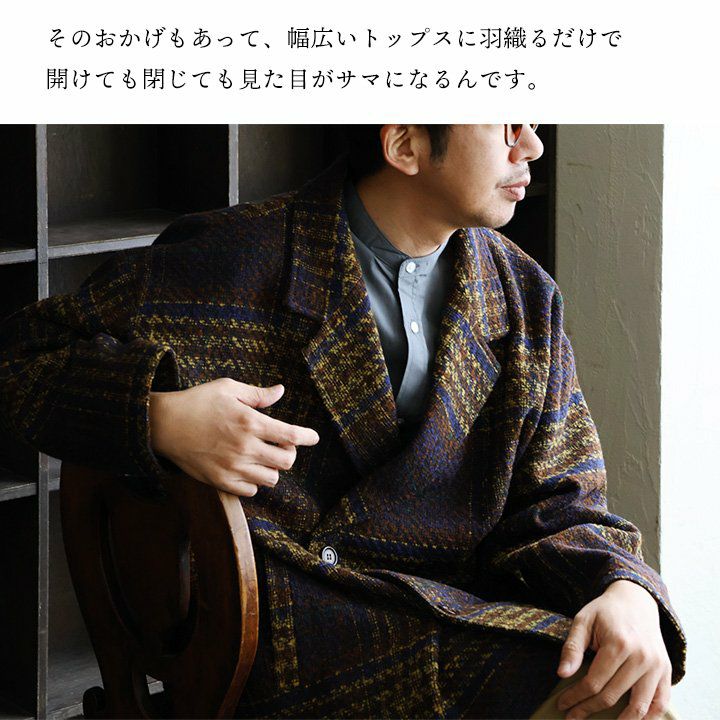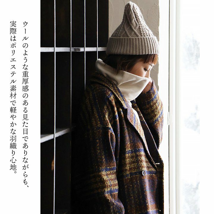他の画像を見る サラッと羽織れるのに、「上品さのあるきちんと感」。 Pコート コート アウター チェック柄 メンズ レディース Vネック ブークレ ポリエステル 裏地付き 軽い 秋 冬 ゆったり 大きいサイズ カジュアル PATY 2~3日でお届け 販売価格 ¥ 12,980 税込 在庫切れ カートに入れる お気に入りに登録する