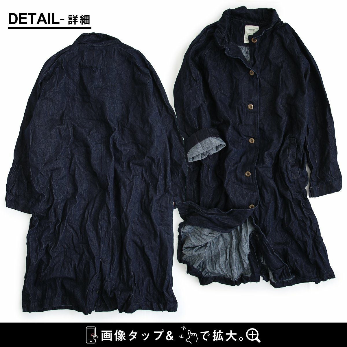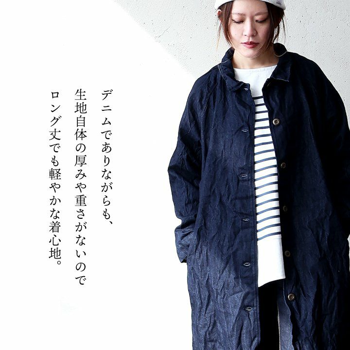 他の画像を見る 「あえて」なカンジが大人。 コート ロングコート デニム レディース ステンカラーコート インディゴデニム しわ加工 ワッシャー加工 8.5オンス ラグラン 薄手 軽い すっきり 着痩せ 体型カバー カジュアル 春 シンプル パティ 2~3日でお届け 販売価格 ¥ 9,790 税込 在庫切れ カートに入れる お気に入りに登録する