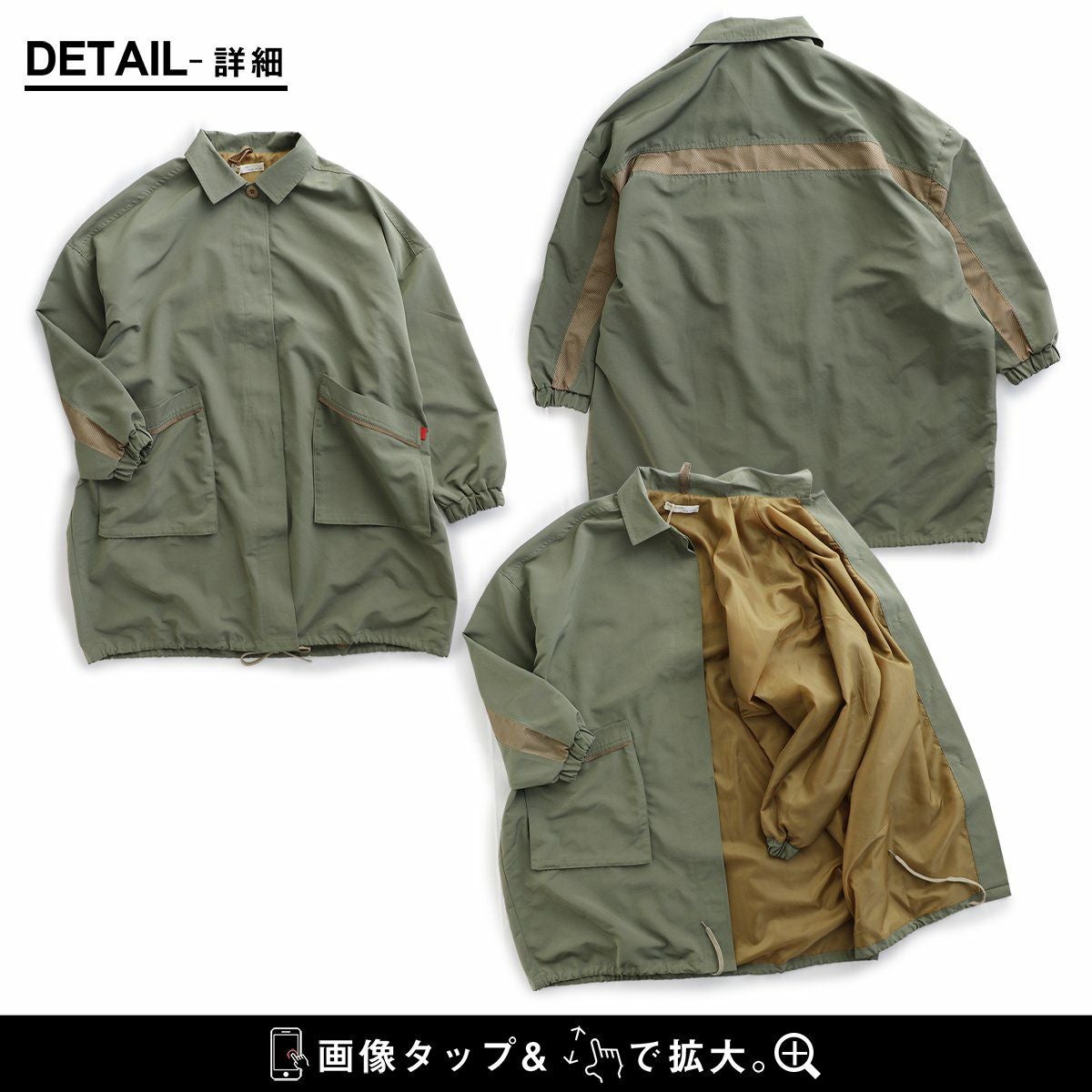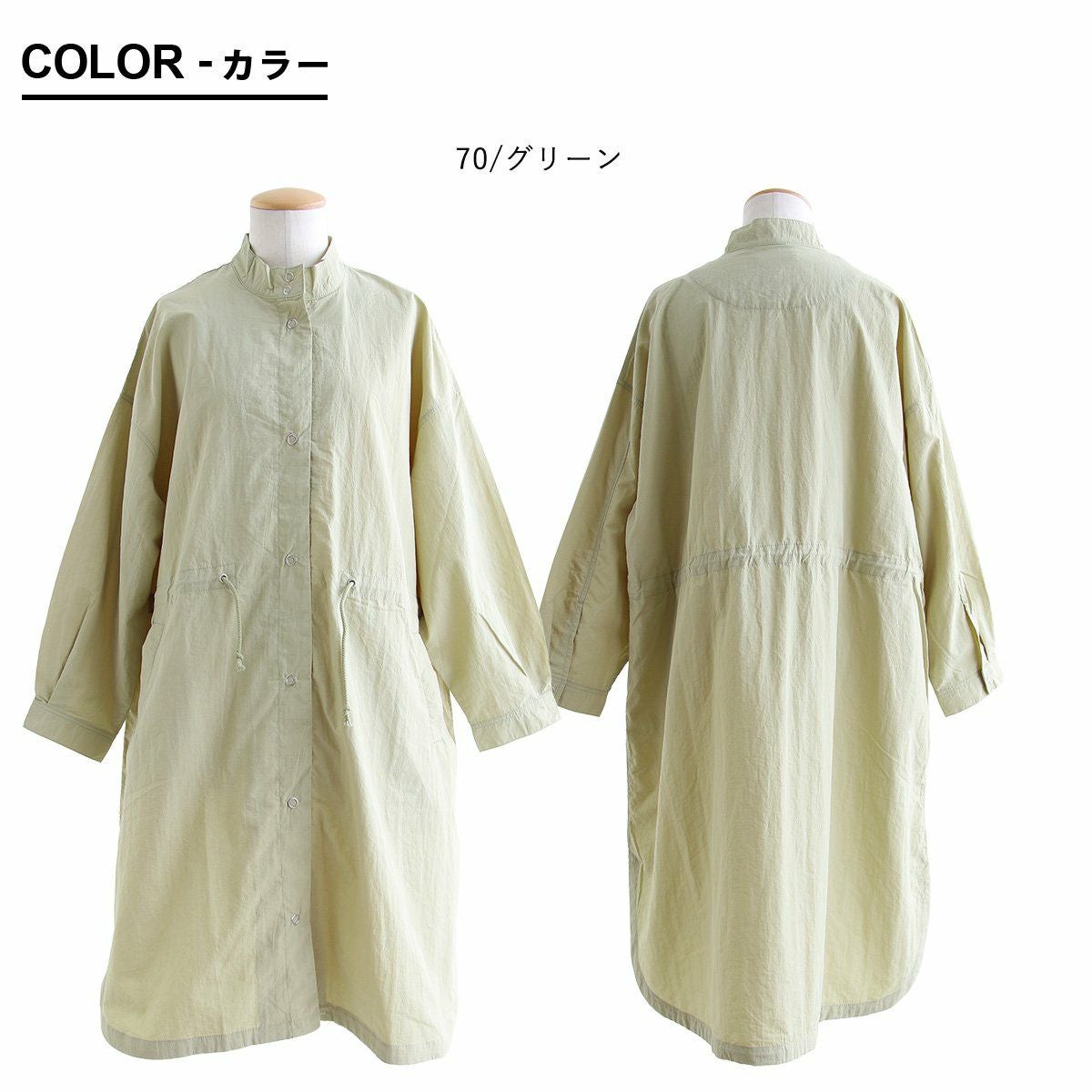 他の画像を見る コートと言うより、マウンテンパーカーのようなカジュアルさが新鮮。 コート ロング丈 スプリングコート レディース ハイネック 薄手 ナイロン100% 撥水 軽い 体型カバー 大きいサイズ ゆったり 春 春服 カジュアル PATY パティ 2~3日でお届け 販売価格 ¥ 5,390 税込 在庫切れ カートに入れる お気に入りに登録する