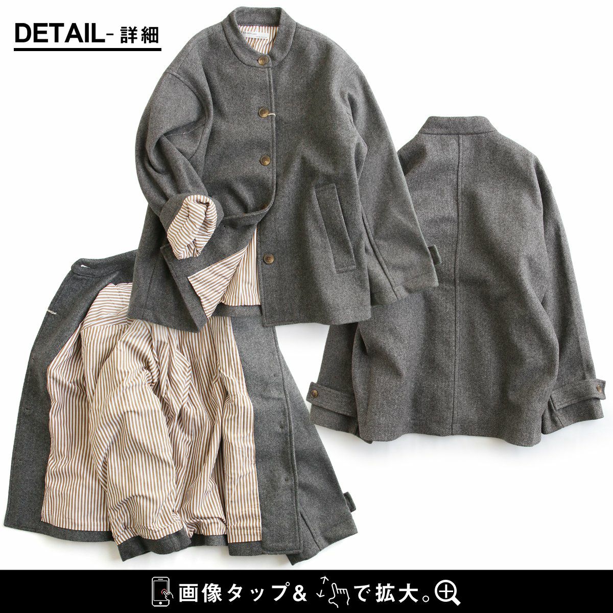 他の画像を見る 軽やかに、カーディガン感覚で。 ジャケット ショートコート アウター レディース スタンドネック無地 メルトン風 ストライプ 裏地付き シルエット絞れる 暖かい 軽い 体型カバー ゆったり 大きいサイズ 秋 冬 カジュアル パティ GENTIL ジャンティ 2~3日でお届け 販売価格 ¥ 8,690 税込 在庫切れ カートに入れる お気に入りに登録する