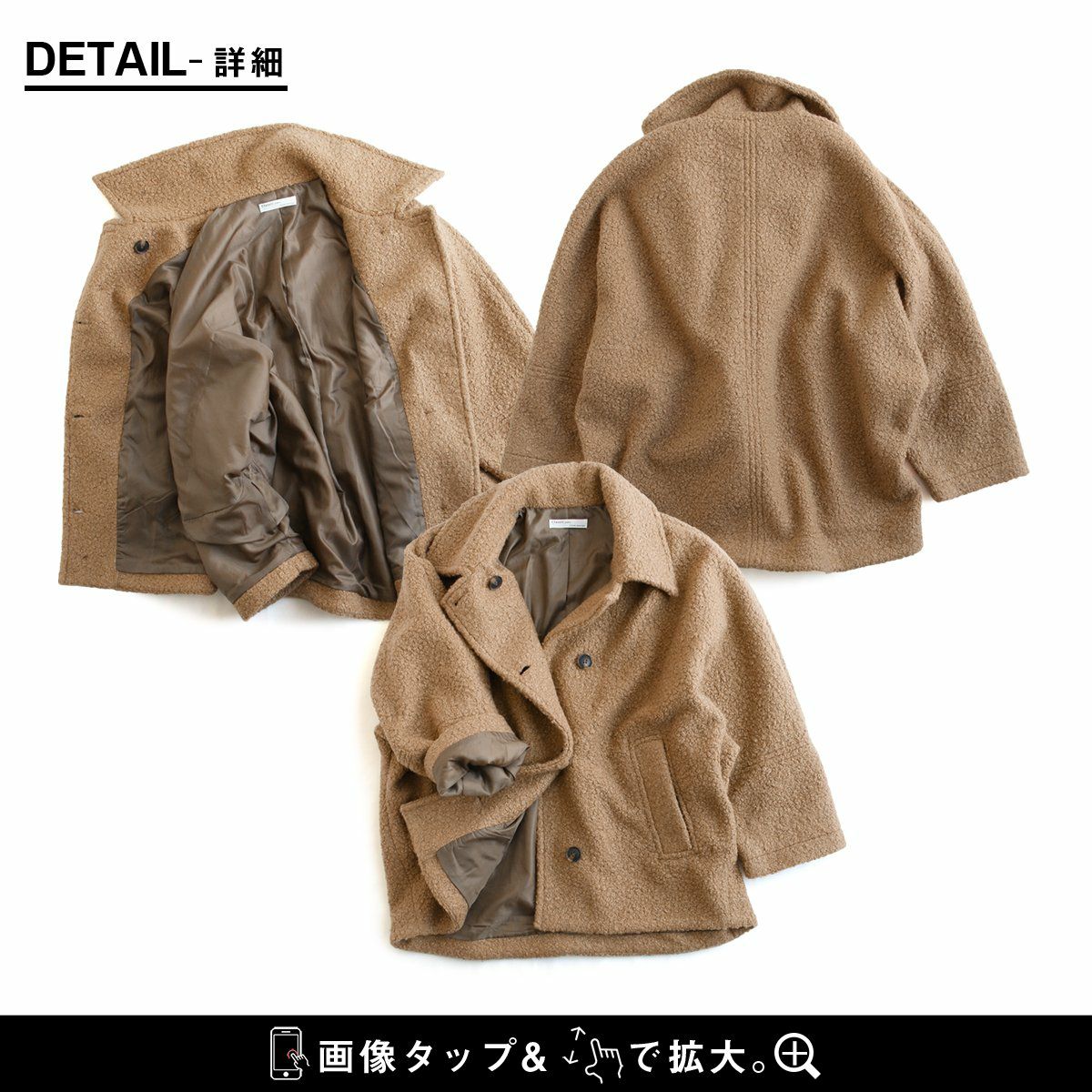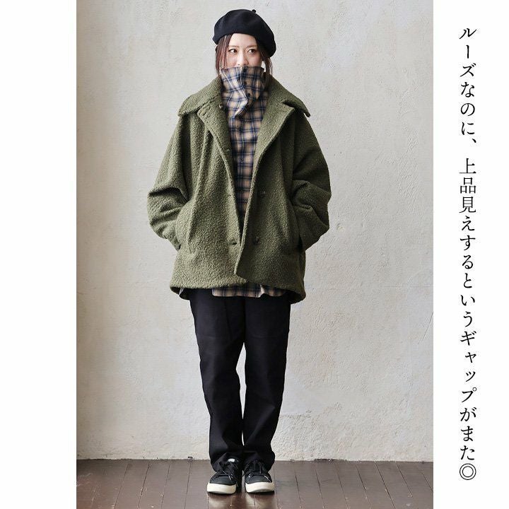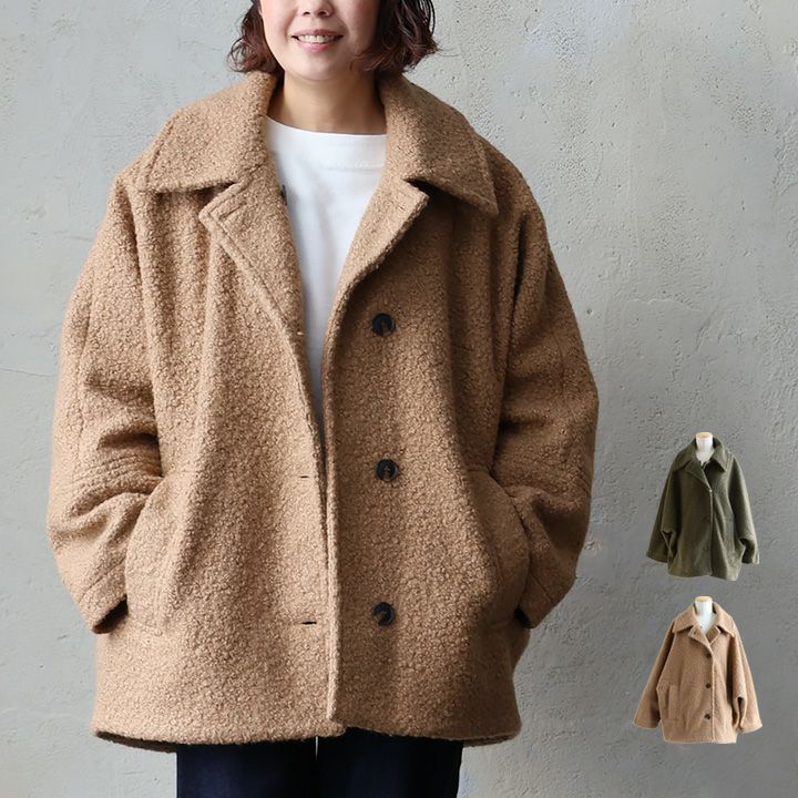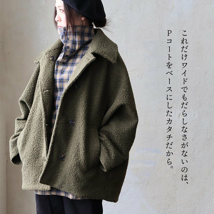 他の画像を見る ルーズで上品。くるくるPコート。 コート ジャケット Pコート 長袖 レディース ブークレ ポリエステル 裏地付き 軽い 暖かい 防寒 ゆったり 大きいサイズ 体型カバー カジュアル 秋 冬 パティ GENTIL ジャンティ 2~3日でお届け 販売価格 ¥ 8,690 税込 在庫切れ カートに入れる お気に入りに登録する