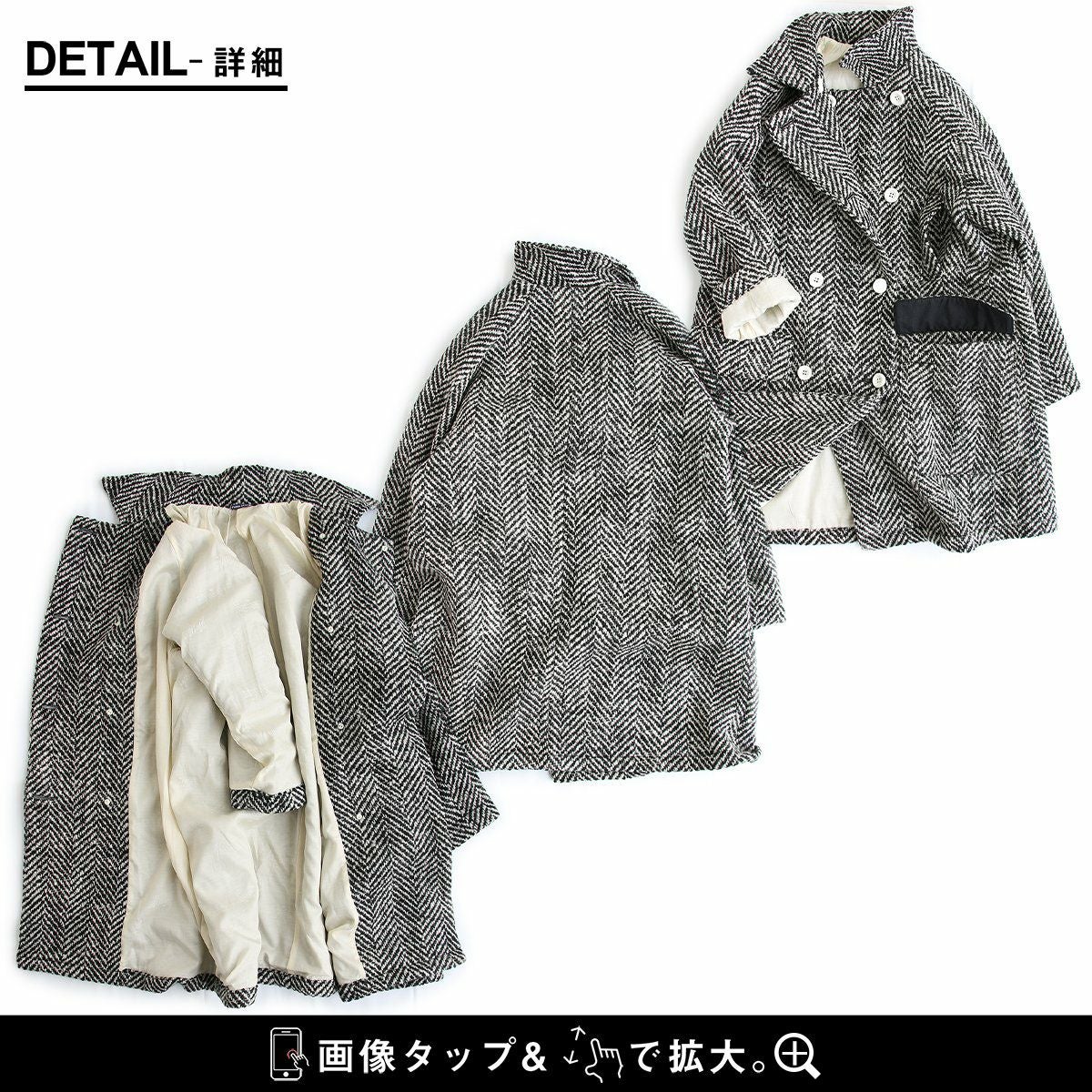 他の画像を見る レトロなのに新しい。裏に「トラ」を隠したハーフコート。 TIGRE BROCANTE ティグルブロカンテ コート ハーフコート ミドル丈 レディース ヘリンボーン ウール レトロ テーラーカラー 虎柄 裏地 お尻 隠れる 軽い 暖かい 日本製 国産 冬 2~3日でお届け 販売価格 ¥ 68,200 税込 在庫切れ カートに入れる お気に入りに登録する