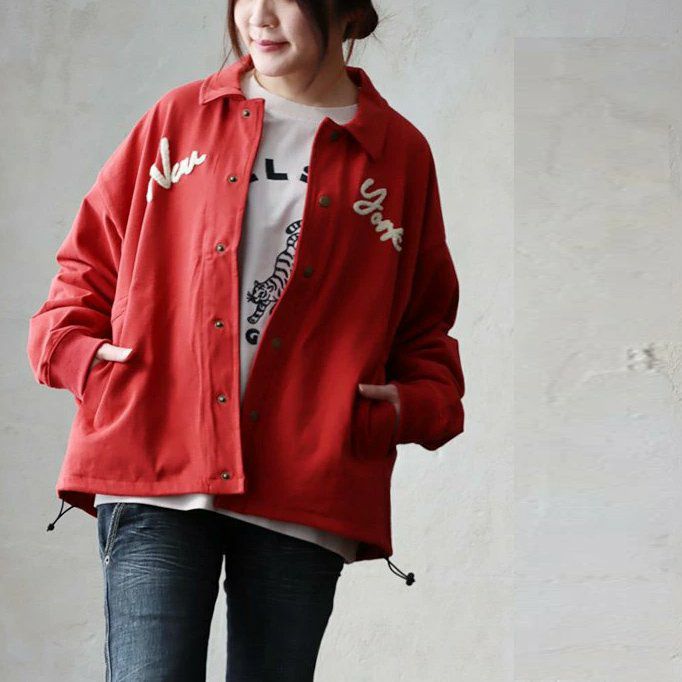 カジュアル派のための、コーチジャケット。 コーチジャケット 長袖 レディース 綿100 コットン 天竺 伸縮性 軽い サガラ刺繍 袖リブ ロックコード ゆったり 大きいサイズ カジュアル パティ KAKELA&TRANQUIL カケラ&トランクイル