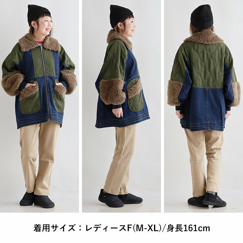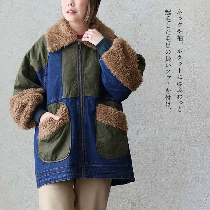 「暖軽く」配色と素材で“違い”を楽しむ。 コート ボアコート レディース ミドル丈 配色 ボア ポリエステル ナイロン 異素材切り替え 裏地付き 軽い 暖かい ゆったり 大きいサイズ 体型カバー カジュアル 秋 冬 パティ