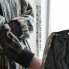 【モデルコメント】中は、厚手のトレーナーも合わせやすそうなゆとりがあります。たっぷりとゆとりがありました。 【客観的コメント】お尻はすっぽりと隠れる着丈の長さです。シルエットもルーズな感じにはなっちゃいますね。