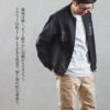 【モデルコメント】中は、カットソー2枚くらいは合わせやすそうなゆとりがあります。程好くゆとりがありました。 【客観的コメント】お尻は半分くらい隠れる着丈の長さです。バランスの良いシルエットで着れていましたね。