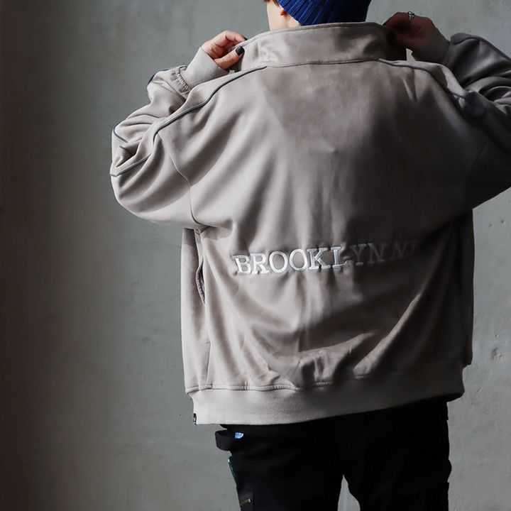 「らしくない」のがすごくツボ。 トラックジャケット ジャージ 長袖 メンズ レディース ハイネック スウェード 袖ライン リフレクター 反射 伸縮性 しっかり生地 リブ ワンポイント 刺繍 ゆったり 大きいサイズ 体型カバー カジュアル 秋 冬 パティ YAKPAK ヤックパック