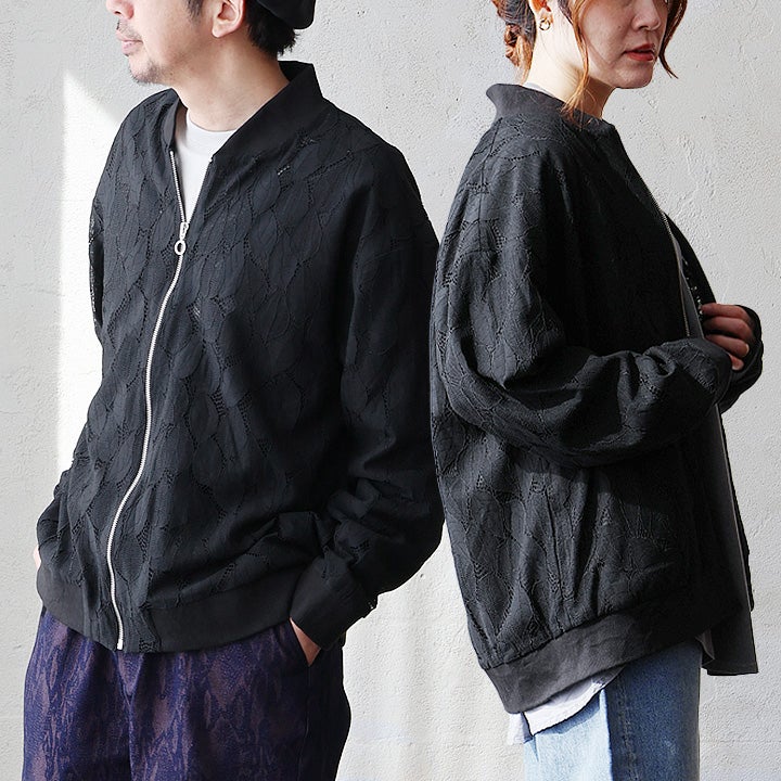 無骨さに、甘さを抑えた透け感を。 ブルゾン 長袖 メンズ レディース コットン ナイロン 裏地付き レース シアー 軽い ゆったり 袖リブ 大きいサイズ カジュアル パティ