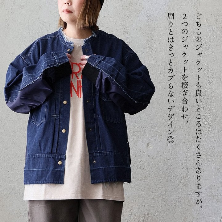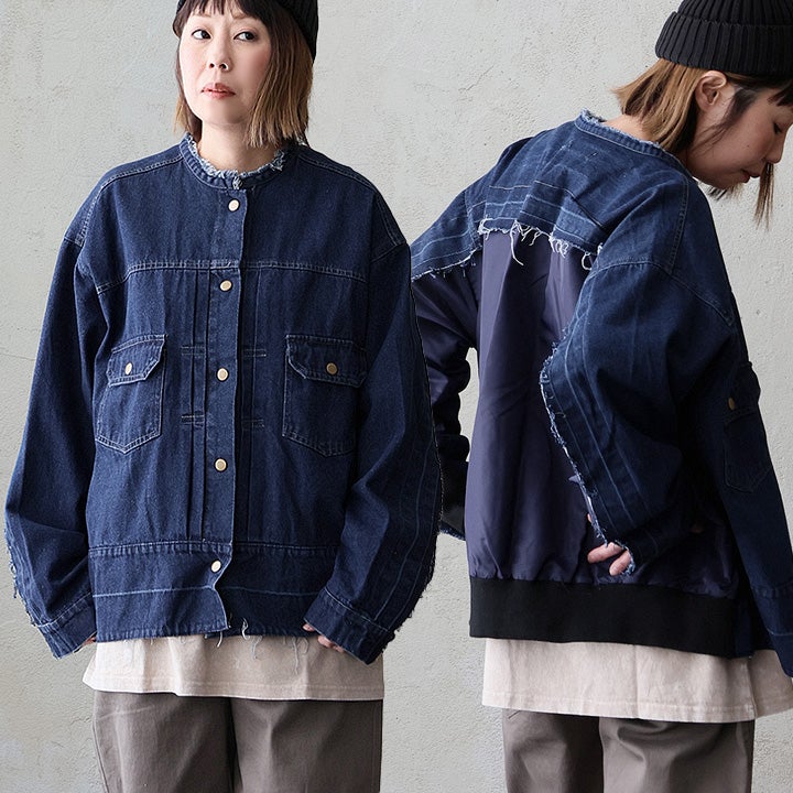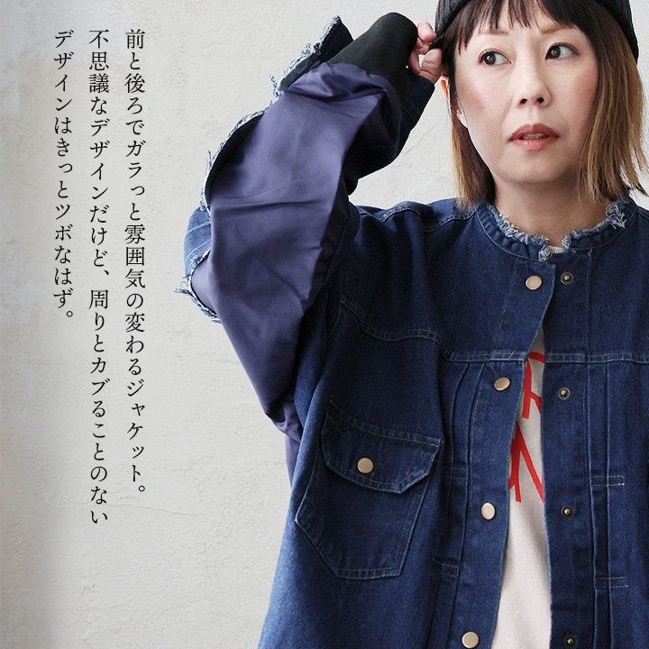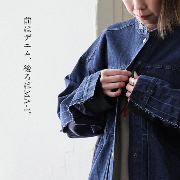 他の画像を見る 前はデニム、後ろはMA-1。 KAKELA&TRANQUIL カケラ&トランクイル ジャケット デニムジャケット MA-1 レディース ノーカラーネック リメイク風 軽い 袖リブ 無地 大きいサイズ 体型カバー カジュアル 秋 冬 春 パティ 2~3日でお届け 販売価格 ¥ 14,300 税込 カートに入れる お気に入りに登録する