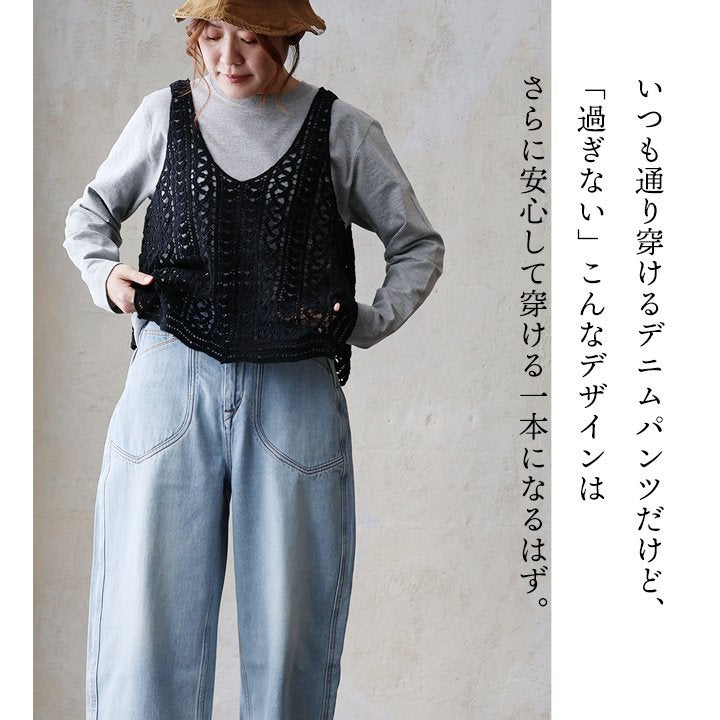 他の画像を見る いつも通り穿けて、「過ぎない」安心感。 cafetty カフェッティ パンツ デニムパンツ コクーン レディース ノンストレッチ 綿100 コットン デニム 配色ステッチ ポケット ウエストゴム ゆったり 大きいサイズ カジュアル パティ 2~3日でお届け 販売価格 ¥ 11,000 税込 詳細を見る お気に入りに登録する