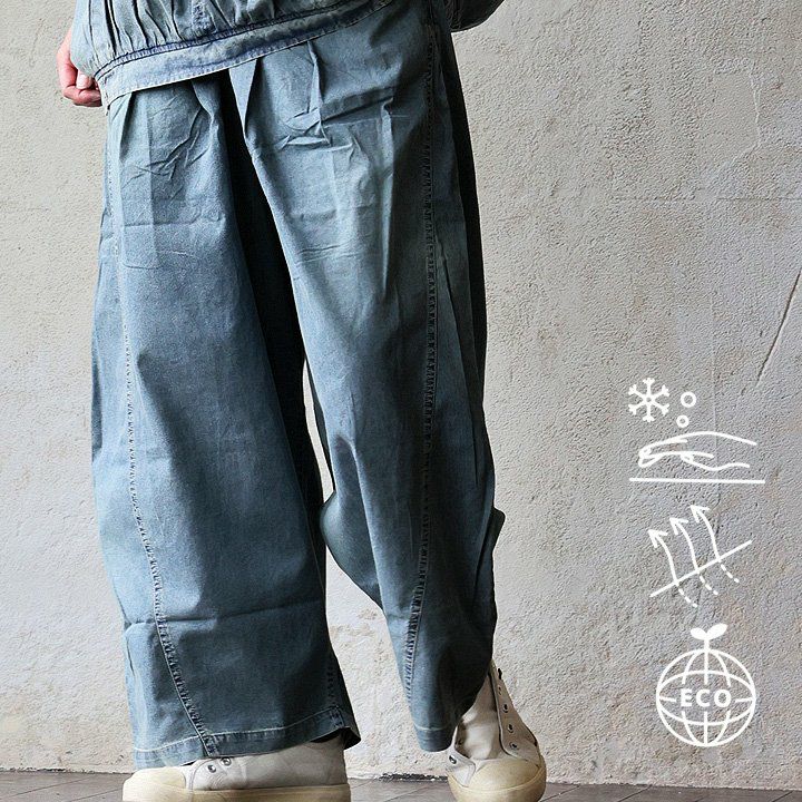 見た目との違いに、良い意味で裏切られる。 パンツ デニムパンツ ワイド レディース セットアップ コットン ナイロン 接触冷感 薄手 通気性 涼しい 軽い ウエストゴム ゆったり 大きいサイズ 体型カバー カジュアル 夏 パティ