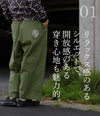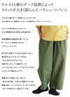 骨盤より少し上で穿きました。全体的にたっぷりとゆとりがあって、シルエットもかなりルーズです。ウエストゴムもあまりフィットはないので、紐はしっかりと縛りたいですね。中は、何でも合わせられるくらいのゆとりがありましたよ。