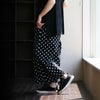 大人が着るドット柄っていいな。 ガウチョパンツ パンツ ワイド レディース ドット柄 総柄 ブラック 綿麻 薄手 涼しい 軽い 夏 夏服 ウエストゴム ゆったり 体型カバー カジュアル PATY パティ sloe スロウ