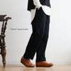【モデルコメント】ウエストで穿きました。ウエストゴムは適度なフィット感です。中は、スウェットパンツも合わせやすそうなゆとりがありました。 【客観的コメント】かかとに少しかかるくらいの丈の長さです。ゆとりはありながらも、良いシルエットで穿けていましたね。