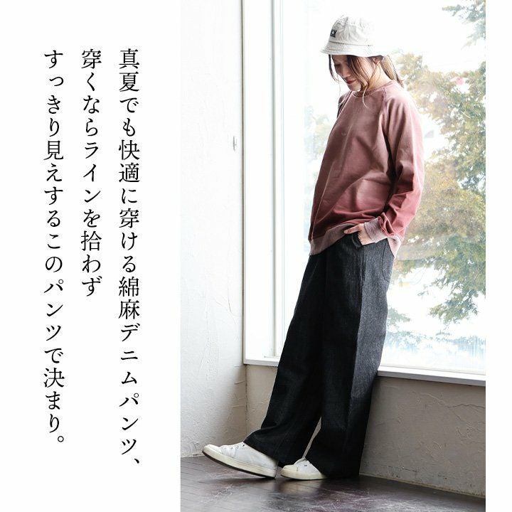 他の画像を見る ラインを拾わず、すっきり。 パンツ ワイド テーパード レディース 綿 麻 涼しい 通気性 ノンストレッチデニム ウエストゴム ゆったり 体型カバー 着痩せ すっきり カジュアル パティ 2~3日でお届け 販売価格 ¥ 5,390 税込 在庫切れ カートに入れる お気に入りに登録する