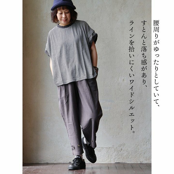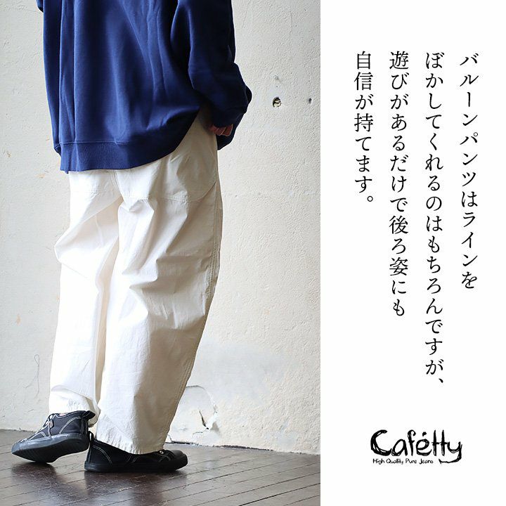 他の画像を見る ラインはぼかして、後ろ姿は遊びをプラスして。 cafetty カフェッティ バルーンパンツ ストレート ワイド レディース 綿100% コットン 高密度 軽い 薄手 ノンストレッチ ウエストゴム ゆったり 体型カバー 大きいサイズ カジュアル メンズライク パティ 2~3日でお届け 販売価格 ¥ 9,900 税込 在庫切れ カートに入れる お気に入りに登録する