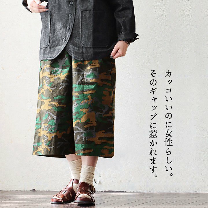 他の画像を見る カッコいいのに女性らしい「ギャップ」。 TIGRE BROCANTE ティグルブロカンテ パンツ フレアパンツ ワイド キュロット スカート風 レディース 迷彩 カモ柄 総柄 綿100% コットン 日本製 しっかり生地 ウエストゴム ゆったり 体型カバー 大きいサイズ カジュアル メンズライク パティ 2~3日でお届け 販売価格 ¥ 19,800 税込 在庫切れ カートに入れる お気に入りに登録する