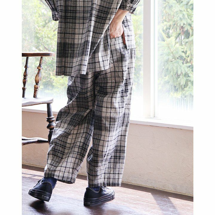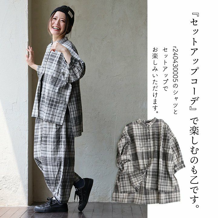 他の画像を見る いつものモノトーンにも季節感と奥行を。 コクーンパンツ ワイドパンツ レディース 先染め チェック柄 モノトーン セットアップ可 綿麻 裏地付き ウエストゴム ゆったり 体型カバー カジュアル 春 夏 秋 パティ 2~3日でお届け 販売価格 ¥ 7,590 税込 在庫切れ 詳細を見る お気に入りに登録する