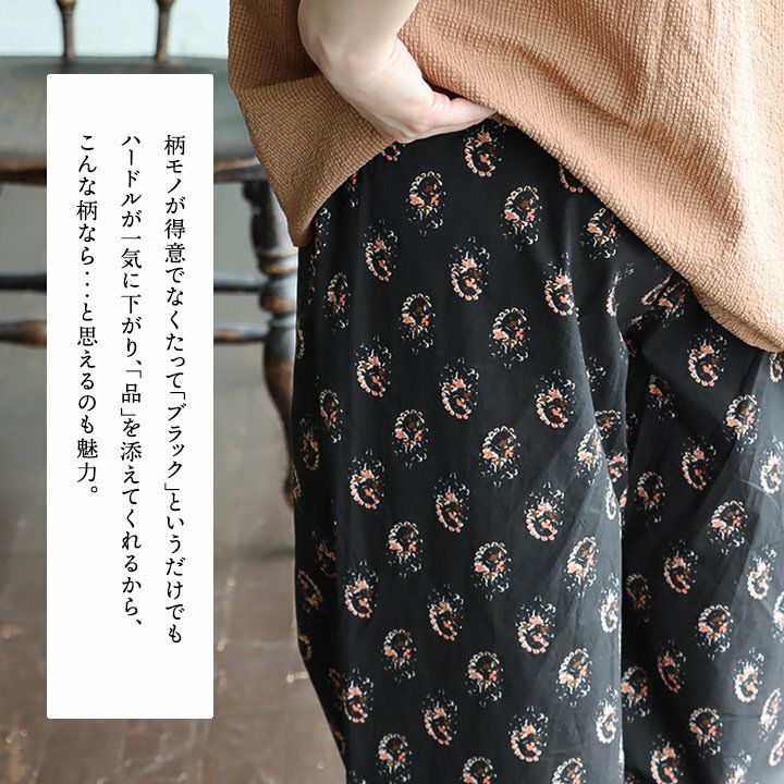 他の画像を見る 「ブラック」というだけで「品」があり、ハードルは下がる。 ワイドパンツ ストレート レディース 総柄 ペイズリー 綿100 コットン 薄手 涼しい 軽い ウエストゴム ゆったり 体型カバー カジュアル 春 夏 秋 パティ GENTIL ジャンティ 2~3日でお届け 販売価格 ¥ 6,490 税込 在庫切れ カートに入れる お気に入りに登録する