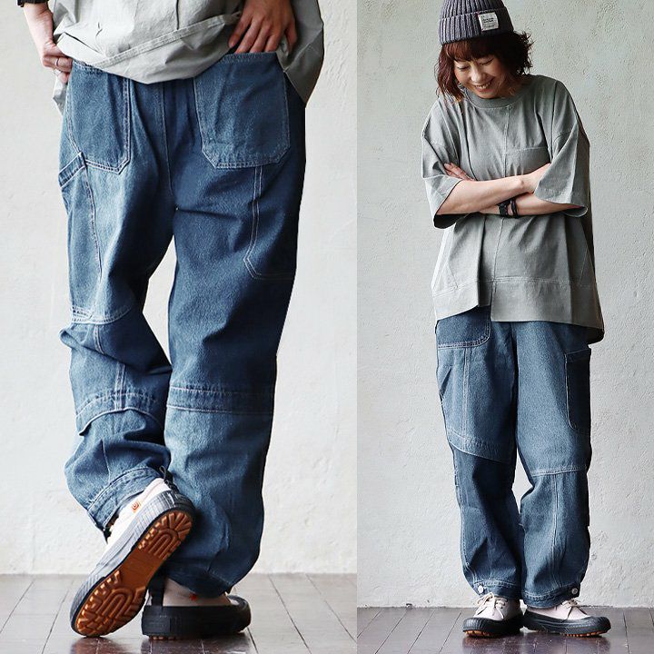 個性を出すなら、本格デザインのデニムで。 デニムパンツ ストレート ワイド レディース リメイク風 パッチワーク 配色切り替え アシンメトリー ウエストゴム コットン 綿100 ゆったり 大きいサイズ 体型カバー カジュアル PATY