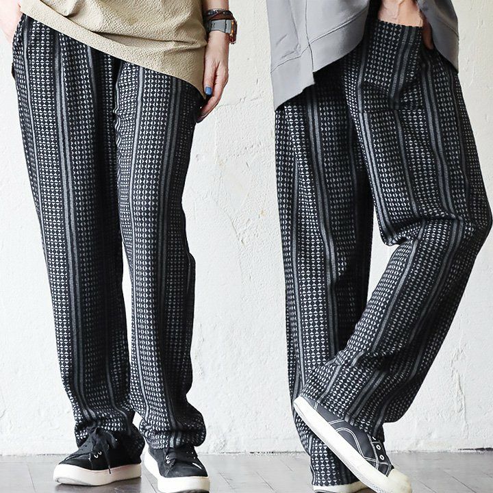 「規則性」で溢れ出る「存在感」。 パンツ イージーパンツ ワイド テーパード メンズ レディース 幾何学柄 ストライプ ジャガード編み シアー ストレッチ 軽い ウエストゴム ゆったり 体型カバー 大きいサイズ カジュアル 夏 夏服 パティ