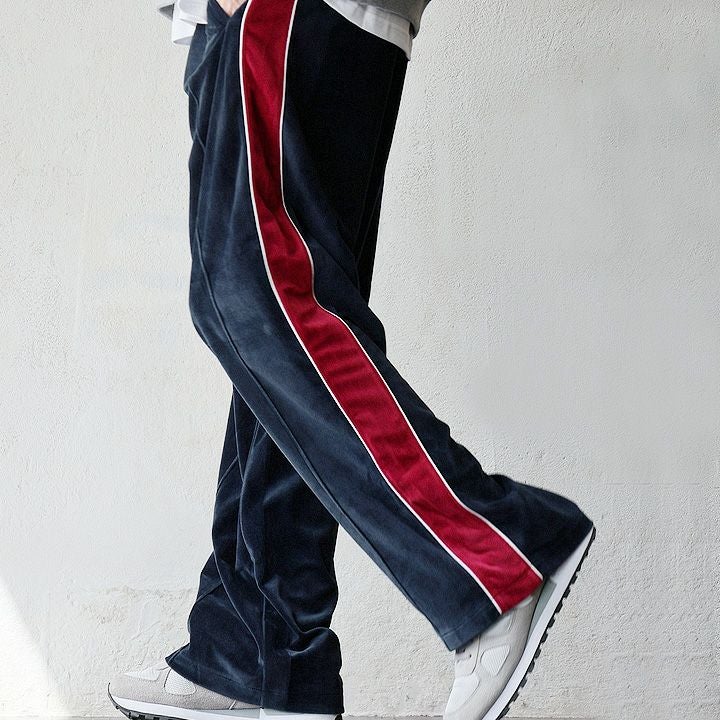 90年代を彷彿とさせる、レトロな配色ベロア。 MANASTASH マナスタッシュ トラックパンツ ストレート ワイド メンズ レディース 配色ライン パイピング ベロア ポリエステル メッシュポケット ウエストゴム ゆったり 大きいサイズ 体型カバー カジュアル ストレート レトロ 秋 パティ