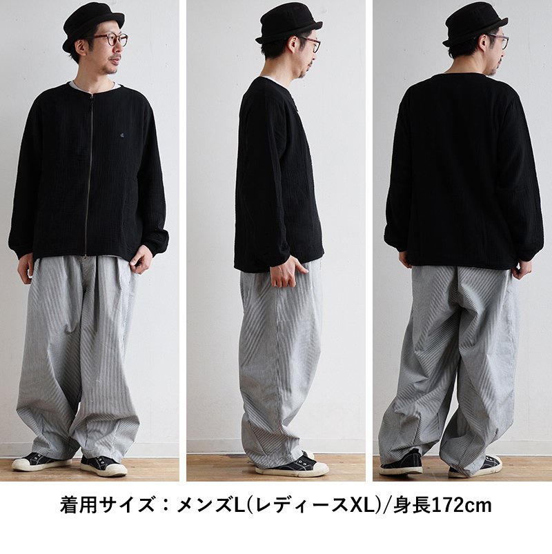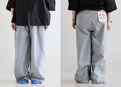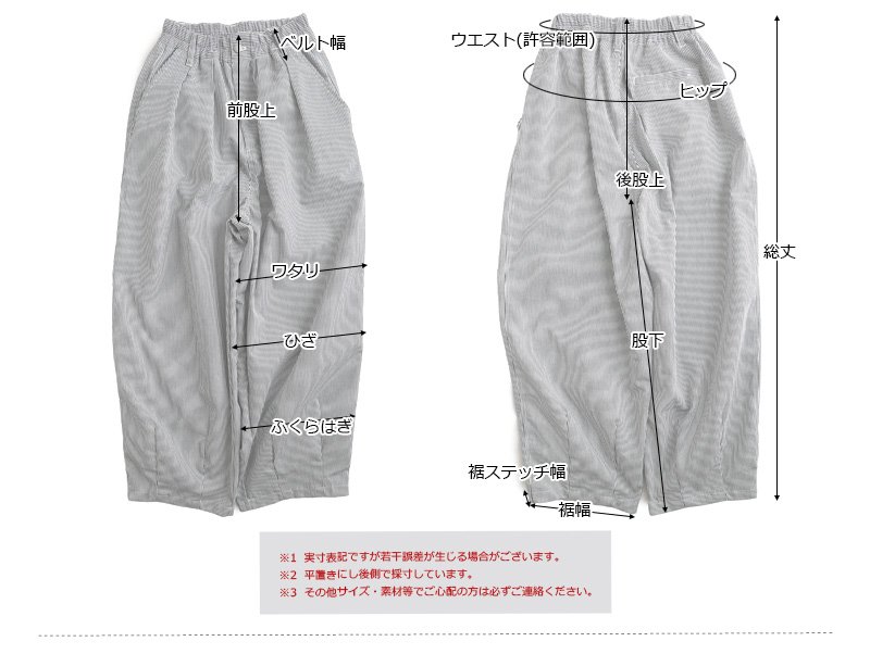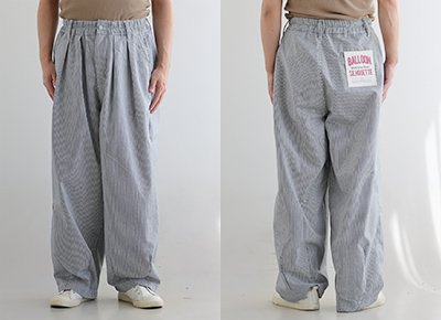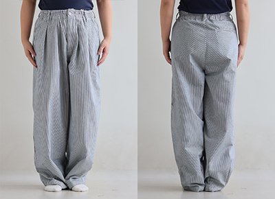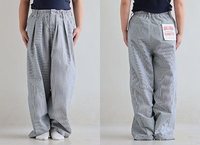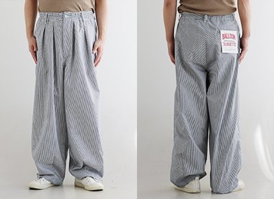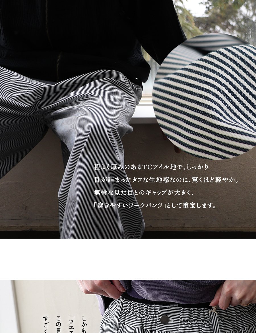 5. パンツ ワイド メンズ レディース タック バルーン TCツイル タフ シワになりにくい ウエストゴム ヒッコリー ストライプ カジュアル アメカジ パティ