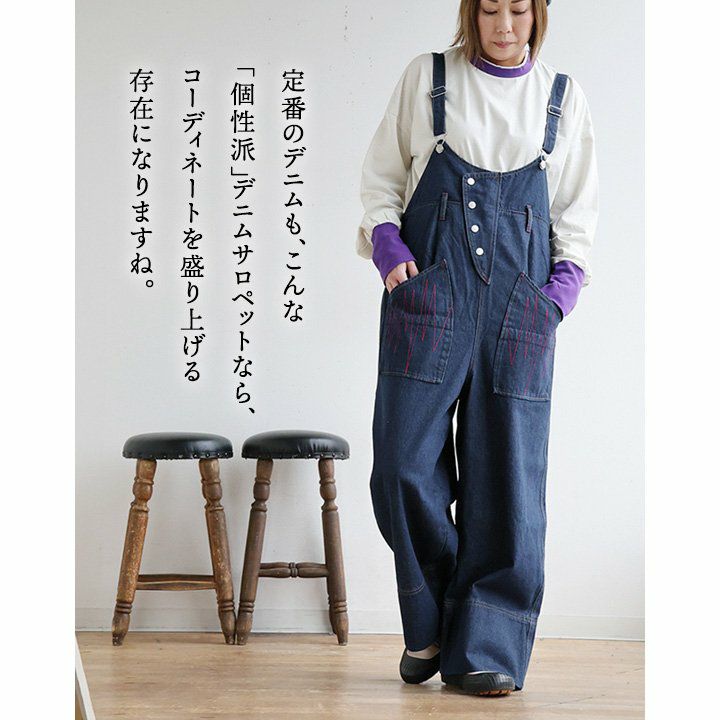 他の画像を見る 「ジグザグ」な個性派。 サロペット オーバーオール パンツ レディース ワイドデニム 綿100 コットン デニム 配色ステッチ 細ベルト ウエストゴム ゆったり 体型カバー 大きいサイズ カジュアル 秋 冬 パティ 2~3日でお届け 販売価格 ¥ 10,780 税込 詳細を見る お気に入りに登録する