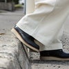 【モデルコメント】中は、上下共にスウェット系も合わせられそうなゆとりがあります。しっかりとゆとりがありました。 【客観的コメント】くるぶしが隠れるくらいの丈の長さです。ゆとりがありながらも、良いシルエットで穿けていましたね。