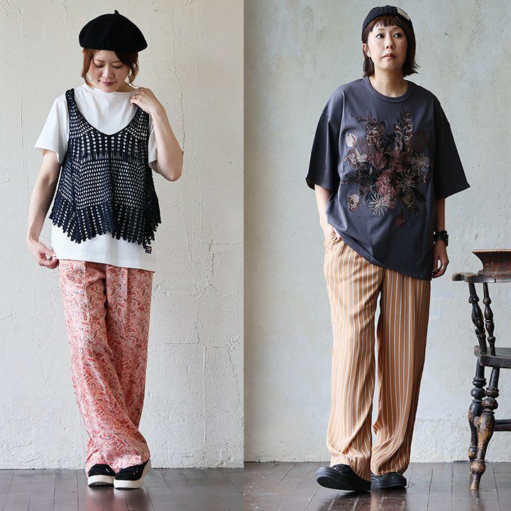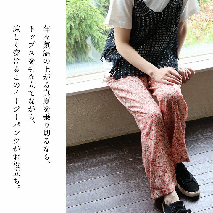 他の画像を見る 真夏を乗り切る「柄×涼」。 Johnbull ジョンブル パンツ イージー ストレート レディース 総柄 ペイズリー ストライプ ポリエステル 薄手 通気性 涼しい 裏地付き ウエストゴム ゆったり すっきり 楽ちん カジュアル 夏 パティ 2~3日でお届け 販売価格 ¥ 15,400 税込 詳細を見る お気に入りに登録する